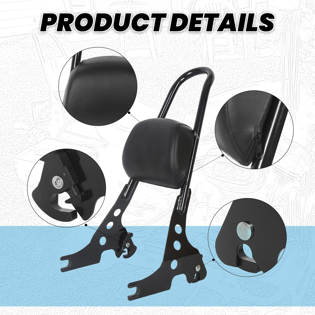 Q: How does the detachable feature work on the sissy bar?A: The detachable design allows you to easily remove and attach the sissy bar without the need to take out the base plate. This feature provides convenience for switching between different configurations.