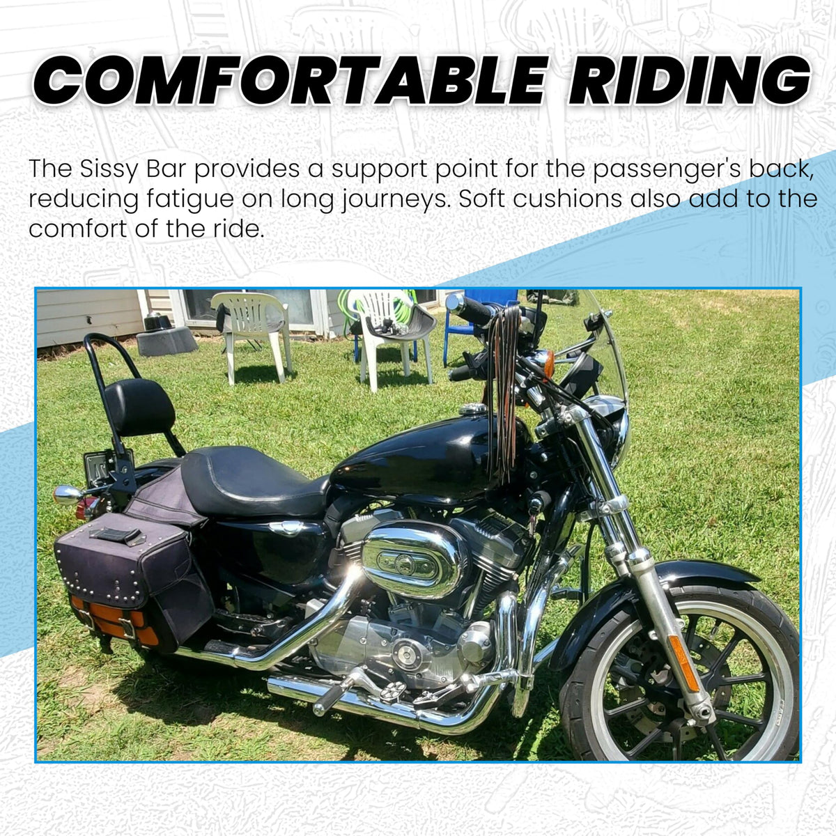 7Blacksmiths Passenger Backrest Pad Sissy Bar Cushion Fit For 2004&Up Harley Sportster Xl Xlh 883 1200 Black Detachable
