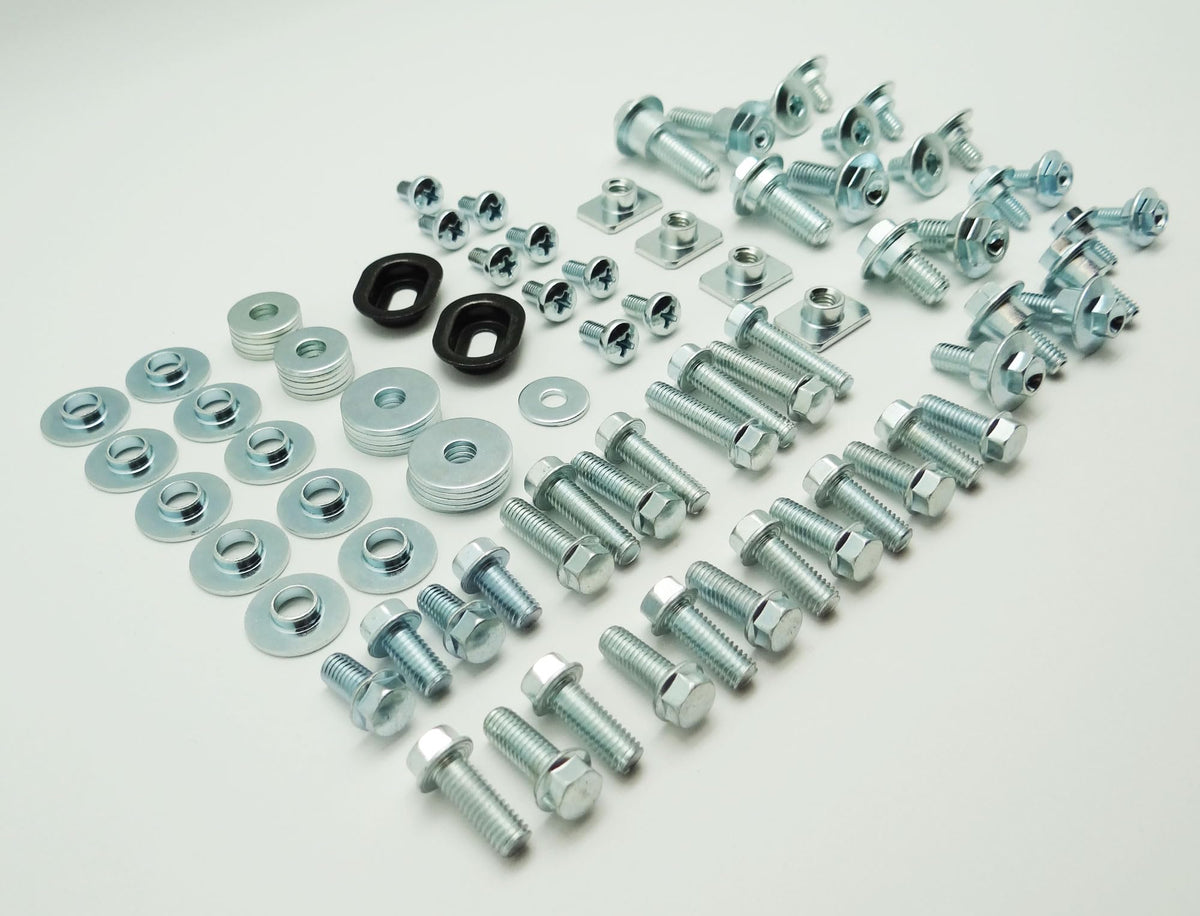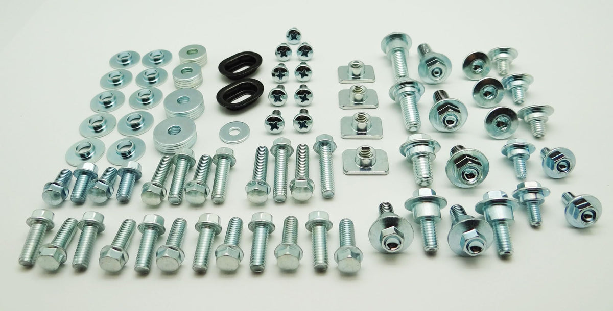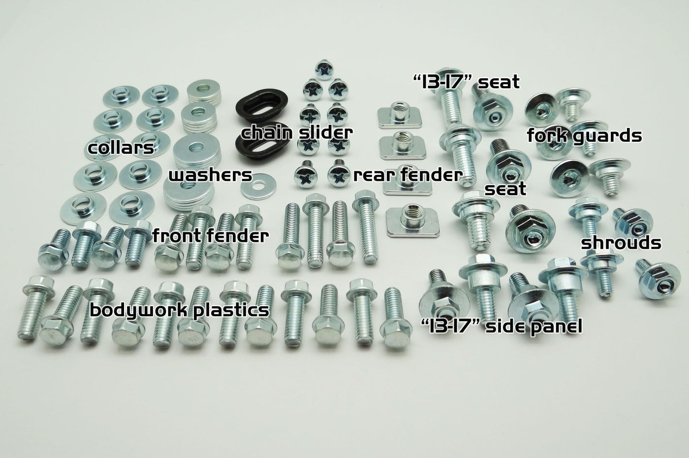 Q: What items are included in the bolt kit?A: The kit includes bolts for front and rear fenders, fork guards, side panels, number plates, radiator shrouds, and shouldered seat bolts, totaling 90 high-quality pieces.