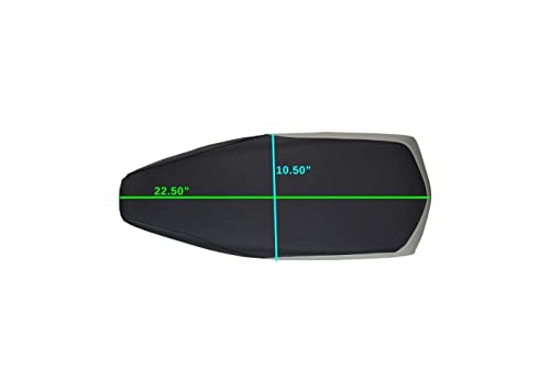 Q: What are the dimensions of the AlveyTech ATV seat?A: The AlveyTech Black & Gray Vinyl Seat measures 22-1/2 inches long and 10-1/2 inches wide, making it a suitable option for various ATV models within the 90cc to 150cc range.