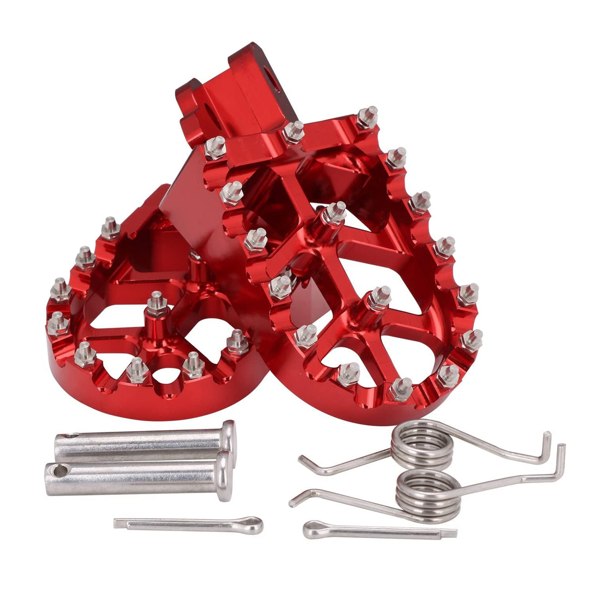 Features: Easy to install. 100% Brand New, Never Installed, High Quality. The whole adopts aluminum alloy material for CNC machining process. Anti-skid studs are installed on the contact surface of the pedal, which has a good anti-skid effect. To reduce its weight, the pedal surface is anodized for a more aesthetically pleasing color. You will receive the exact same item as shown in the picture. Fitment: For CRF110F 2013-Present For CRF125F 2014-Present Specification: Color : As pictures (Red/Silver/Black) Material: 6061 Aluminum Alloy + Stainless Steel Package Includes: 1*Pair of FootPegs with spring + stainless steel pin + cotter pin As Pictures Instruction of Installation is NOT Included