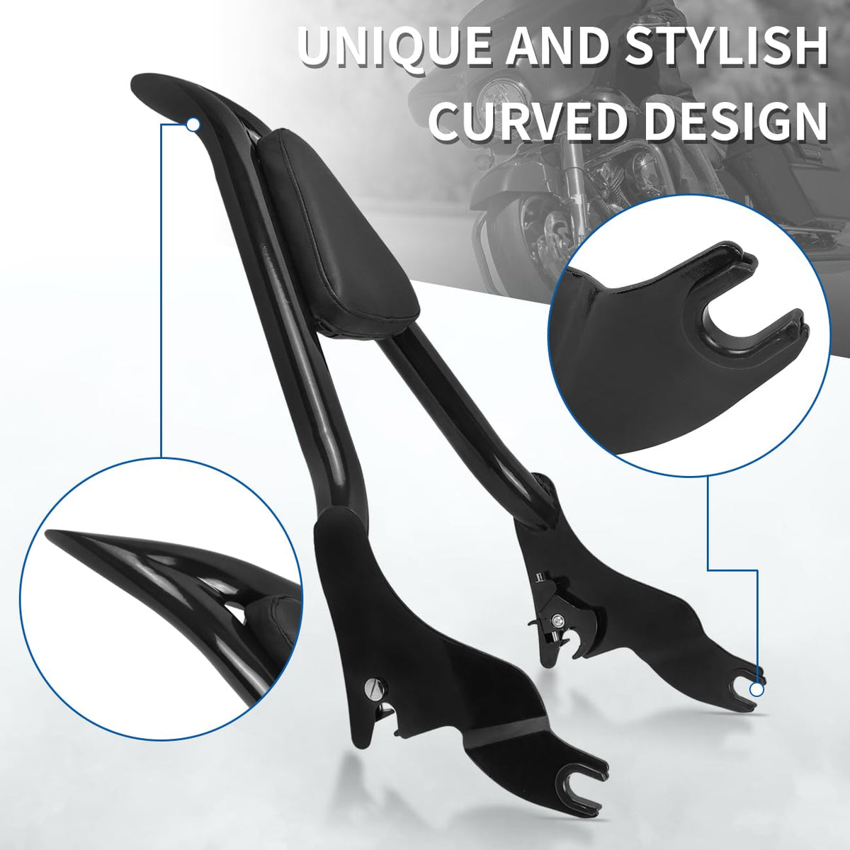 Q: What materials are used in the construction of the sissy bar?A: The sissy bar features a sturdy steel metal bracket and a pad made from PU leather and foam, providing both durability and comfort for passengers.