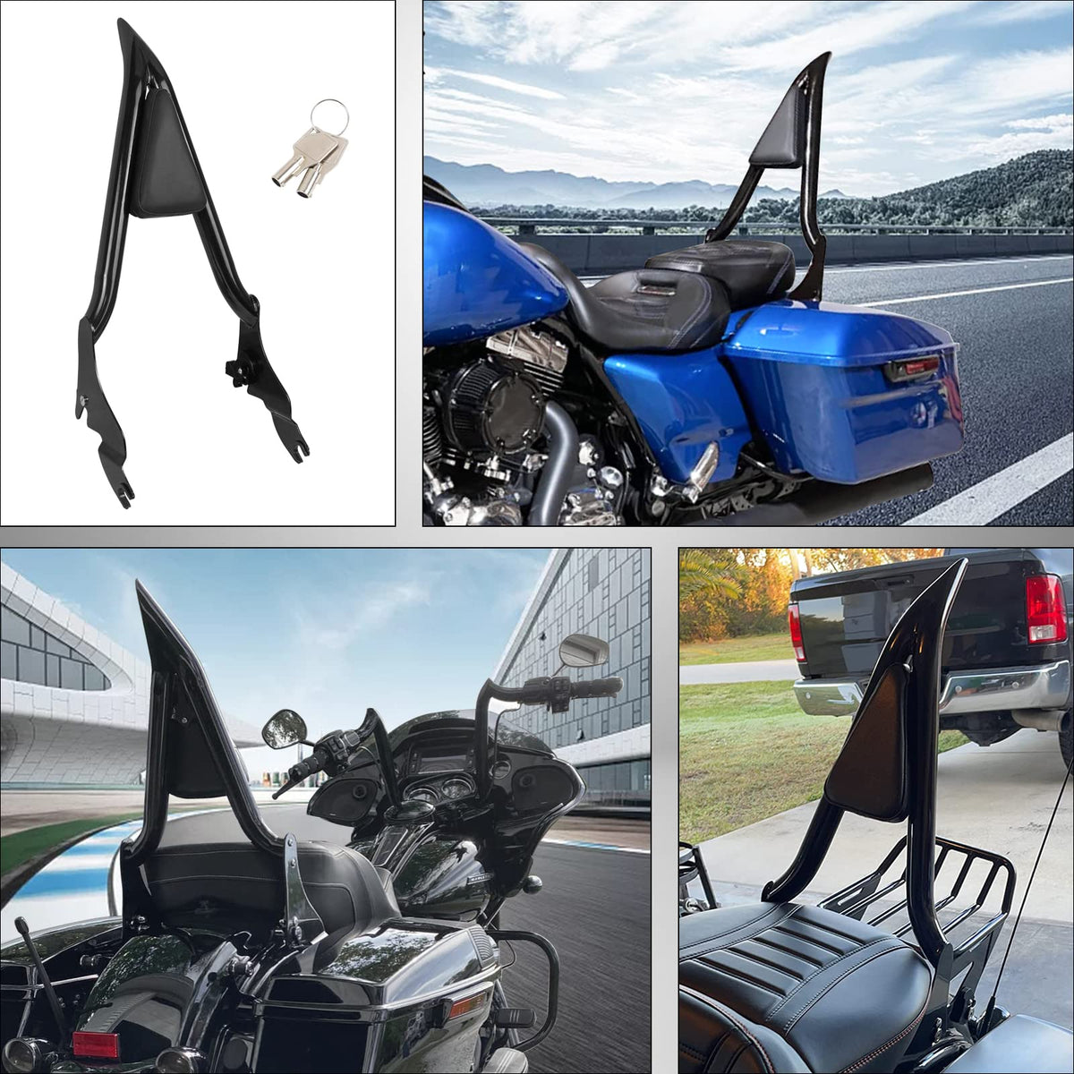 AUFER 28'' Motorcycle Rear Passenger Backrest Sissy Bar With Pad Locked Rotary Docking Latches Clips With Keys Compatible With F