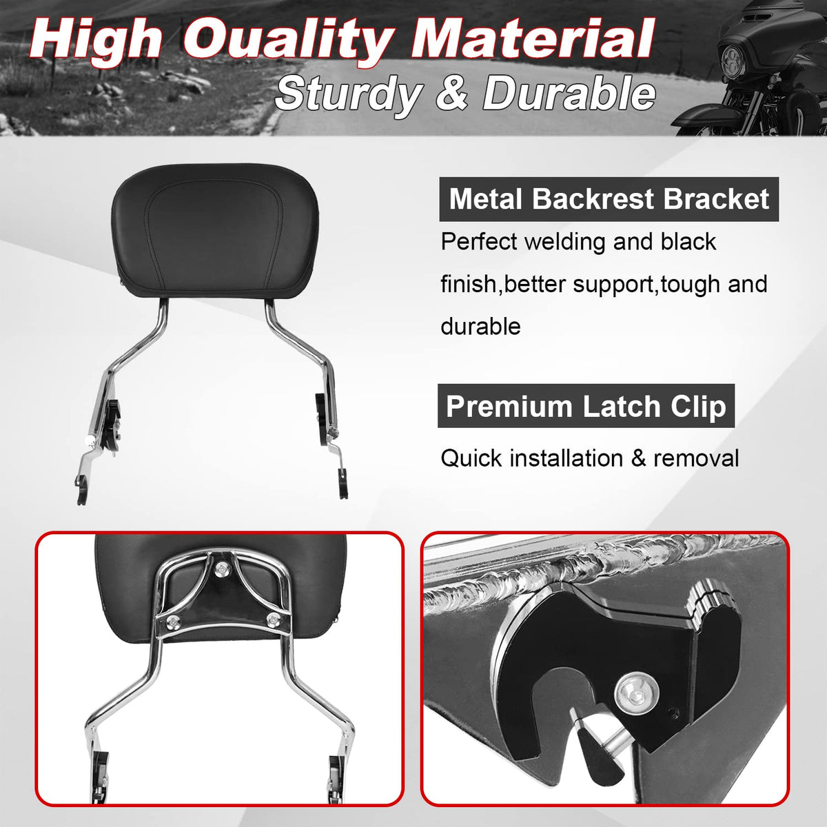 Aufer Detachable Backrest Sissy Bar Upright Passenger Backrest With Pad Compatible With For Touring Road King Street Glide Elect