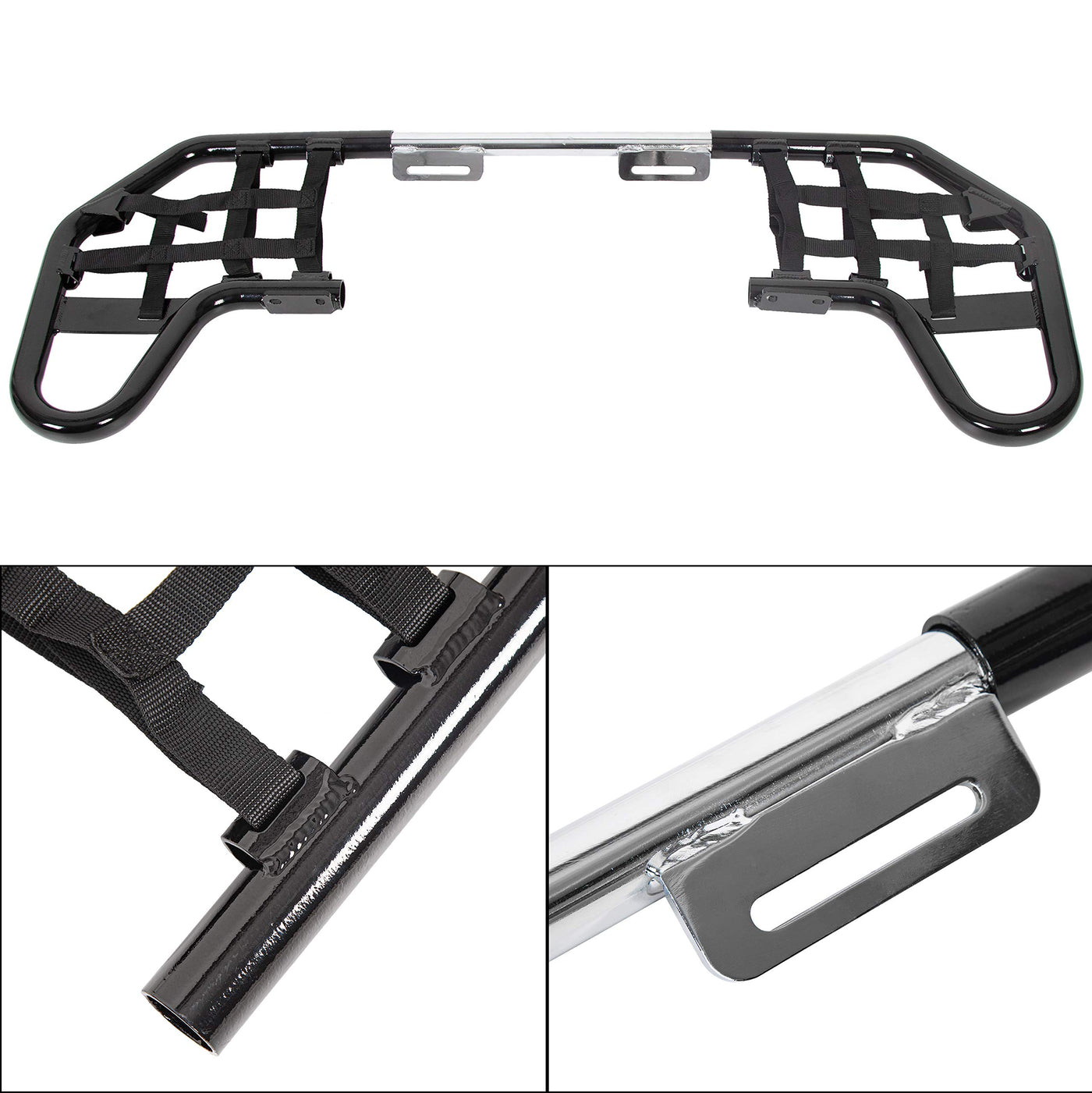 Q: What materials are the nerf bars made from?A: The nerf bars are constructed from 1 3/8" alloy metal tubes, which are heli-arc welded for enhanced strength and durability, making them beefier than standard options.