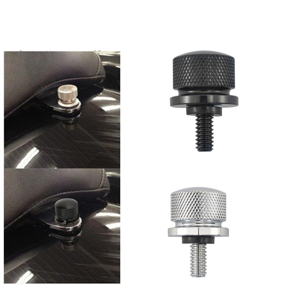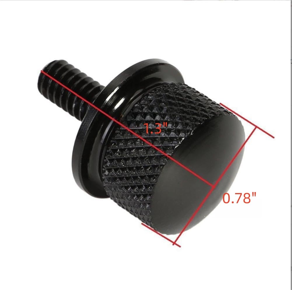 FITMENT: It is aftermarket Black Stainless Steel Seat Bolt Screw compatible for Harley Davidson Touring Models 1996-later with 1/4''-20 thread. PRODUCT FEATURES: Durable: This seat bolt made of stainless steel, is very durable. Installation: The seat bolt with 1/4''-20 thread is mounting rear seat to top fender,not work with solo seats or side mount seats. Good Replacement : This black seat screw is a good replacement of the existing seat screws. Easy to Install:Knurled knob is very easy to install or remove without any tools,can replace old seat screws quickly. Package Include: 1x quick release rear seat screw Note: Thread type is 1/4''-20. Please check the existing thread type on your Seat Bolt first to confirm that this product will be compatible. A very small number of models use 1/4''-28 which won't work with this seat bolt. Warm Tips: If you encounter the situation that the seat bolts are too long or could not tighten down for your motorcycle during installation, you can add a spacer together to make it just the right length and more stable.