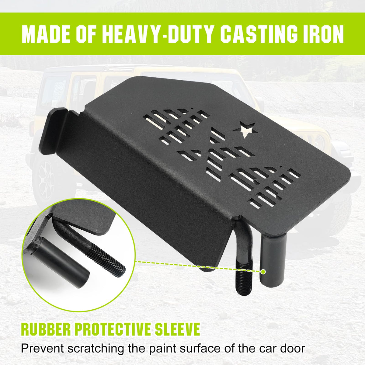 BORDAN Front Foot Pegs Doors Off for Jeep Wrangler JK JKU JL JLU JT Gladiator 2007-2025, Exterior Door Hinge Foot Peg Metal Rest Pedals, Comfortable 120 Degree Wrangler Foot Pegs, 4X4 Flag Style