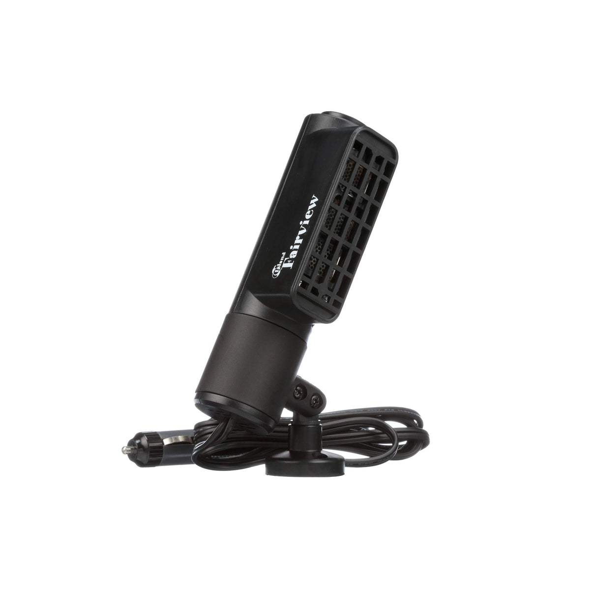 The Fairview 12 Volt defogger will defog your windshield in minutes. It is easy to install with either a sure grip suction cup enabling the defogger to be easily removed and stowed when not in use or a permanent screw-down base and a standard lighter plug. The genuine PTC ceramic element generates 340 BTU’s of heat to defog your windshield quickly. The Fairview is completely safe; it is warm to the touch but is never hot. The small footprint heater takes up little space on the dash.Specifications Dimensions: 6.75” x 2.5” x 4.0”Draw: 8.3A, 100W, 340BTUsCare and Maintenance The Fairview requires very little maintenance. Unplug the unit before cleaning. A vacuum can be used to clear the heater of any dust build-up, and a dry cloth may be used to wipe the outer surface. Do not attempt to open the unit to clean. Do not use gasoline, thinner or other harsh chemicals to clean the unit.