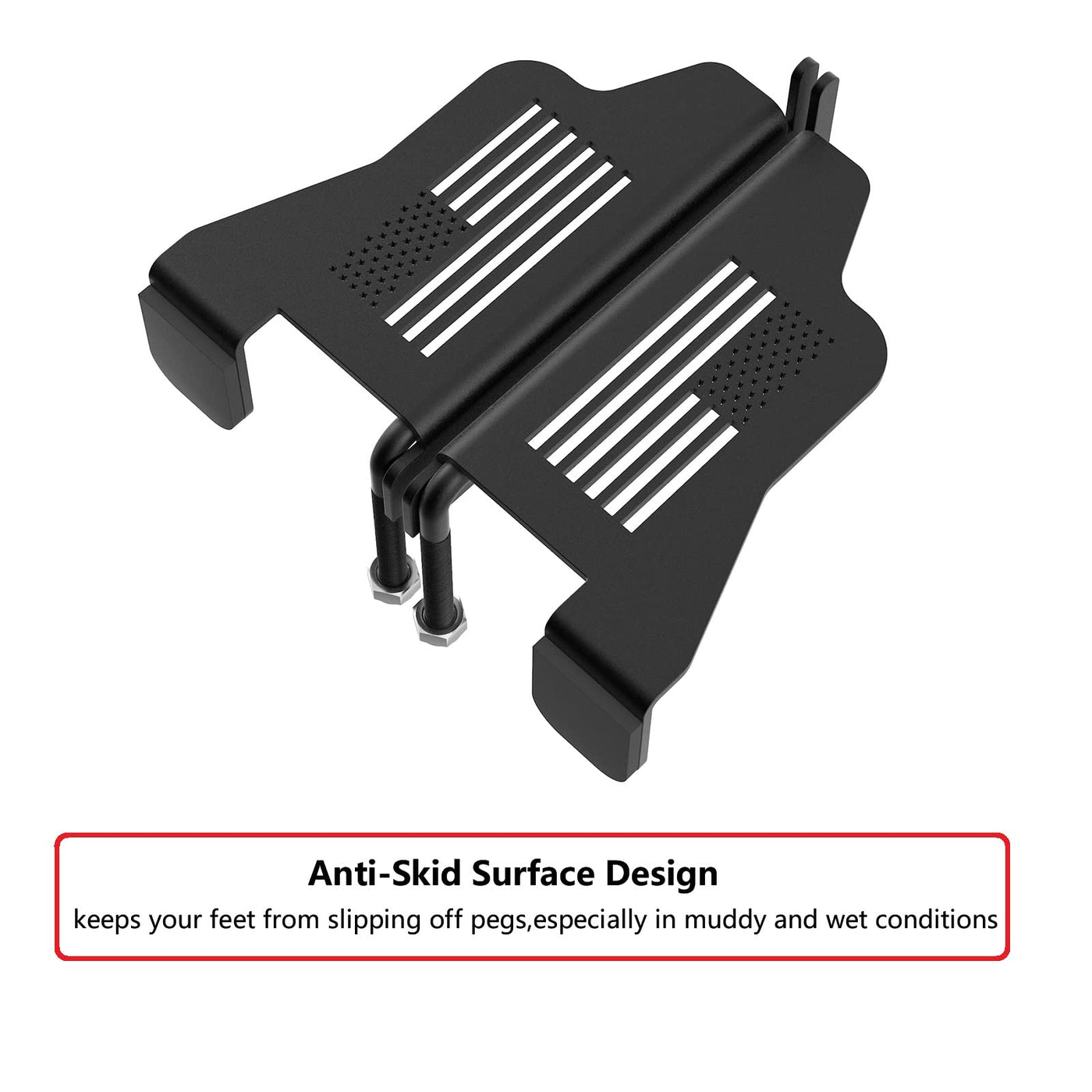 Q: Do the foot pegs provide a safe footing during use?A: Yes, these foot pegs feature an anti-skid surface that helps prevent slipping, even in muddy or wet conditions, allowing for a safe and secure footing during your drives.