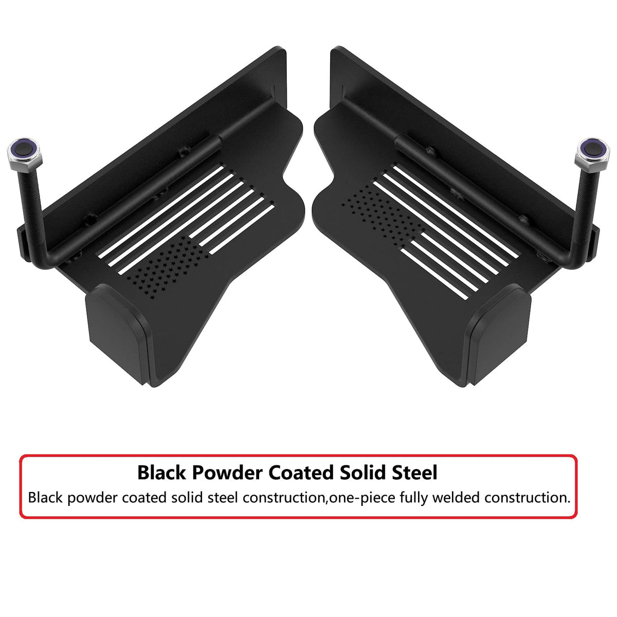The foot pegs fit perfectly into your beautiful wrangler, and you can ride into the sunshine, atop the envy of other road users. For your comfort, they come with an anti-skid surface for your feet to stay in place FEATURES Protection pad to protect the hinges Anti-skid surface for your foot Matte black powder coat finish Rubber bumper to protect the paint job Convenient and easy to install INCLUDES 2x Foot Pegs with Screws