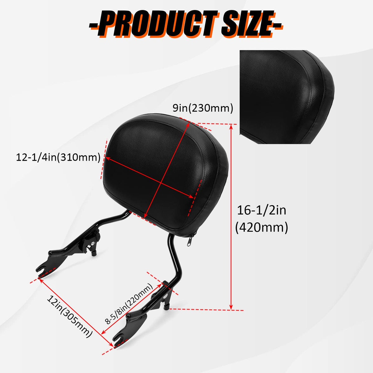 Fitment - Detachable Backrest Sissy Bar Compatible With 09-Later Touring Models Equipped With Required Docking Hardware Kits; Compatible With 09-Later Touring Models Equipped With Rigid-Mount Tour-Pak Luggage Require Purchase Of Appropriate H-D Detachables Tour-Pak Conversion Kit (Please See The Product Description Below For Exact Model/Year Fitment). Pay Attention - Not Compatible With Trike, 2009-Later Cvo Models With Rigid Mount Tour-Pak & 2014 Touring Models With Rigid Mount Tour-Pak. Not Compatible With 2009-2013 Flhtc, Flhtcu, Flhtk , Fltru & Models Equipped With Native Equipment Rigid Mount Tour-Pak Require Detachable Tour-Pak Rack Kit. Parameter - 18.6'' Tall From The Rear Docking Point To The Top Of The Pad. Black Faux Leather Backrest: 10.63''(H) X 13.78''(W). The Sissy Bar Is Made Of Solid Steel & The Backrest Pad Is Made Of Synthetic Leather. Comfortable Riding - The Backrest Is Capable Of Ensuring Your Passenger A Smooth And Comfortable Ride. It Is Also A Good Decoration For Your Motorcycle. Package Included - Instructions Do Not Contain. You Will Receive 1 X Black Detachable Backrest Sissy Bar. You Need To Purchase Additional 2-Point Or 4-Point Docking Hardware Kits To Install.