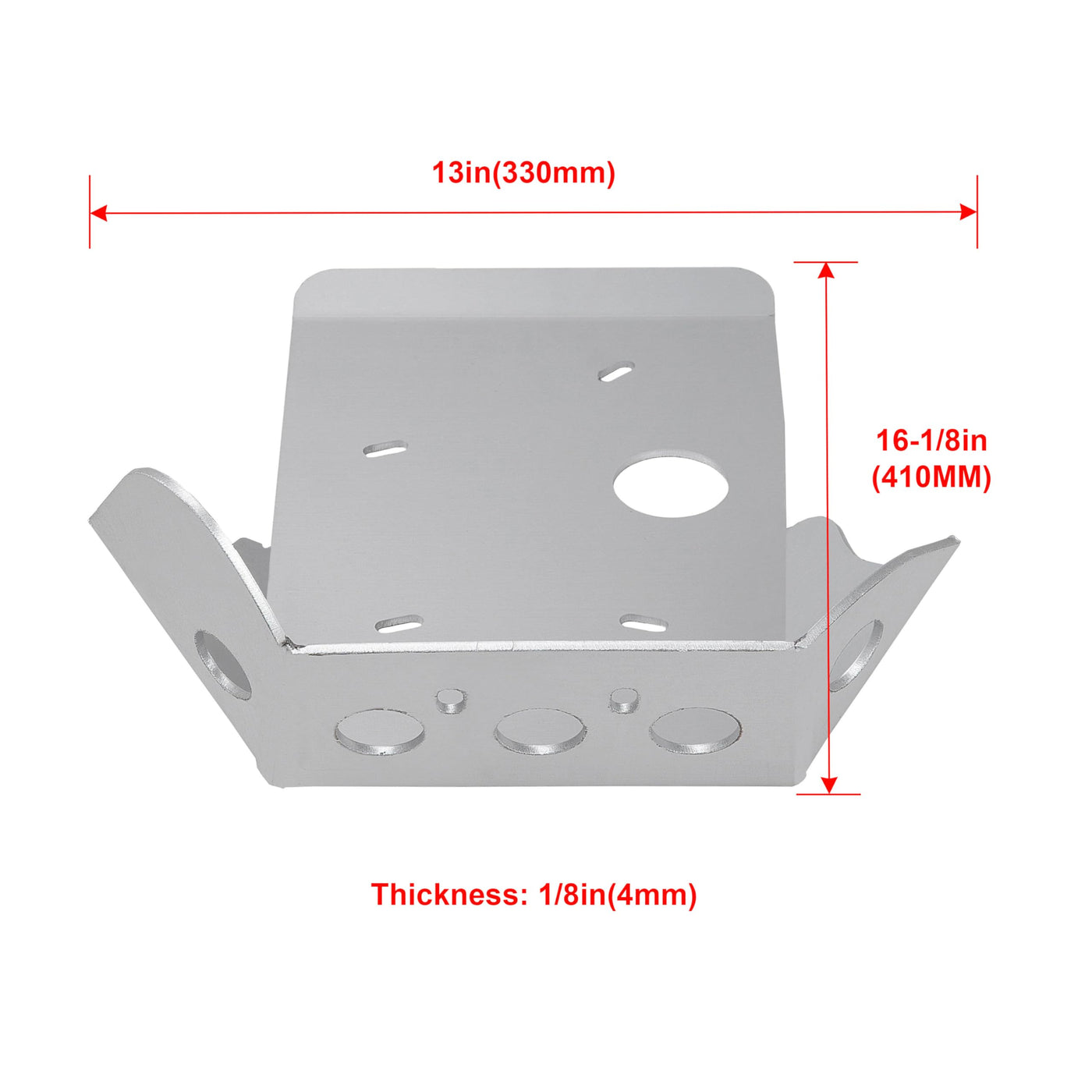 Q: What is the size of the ECOTRIC Aluminum Skid Plate?A: The dimensions of the ECOTRIC Aluminum Skid Plate are approximately 17.72 inches in length and 13.6 inches in width.