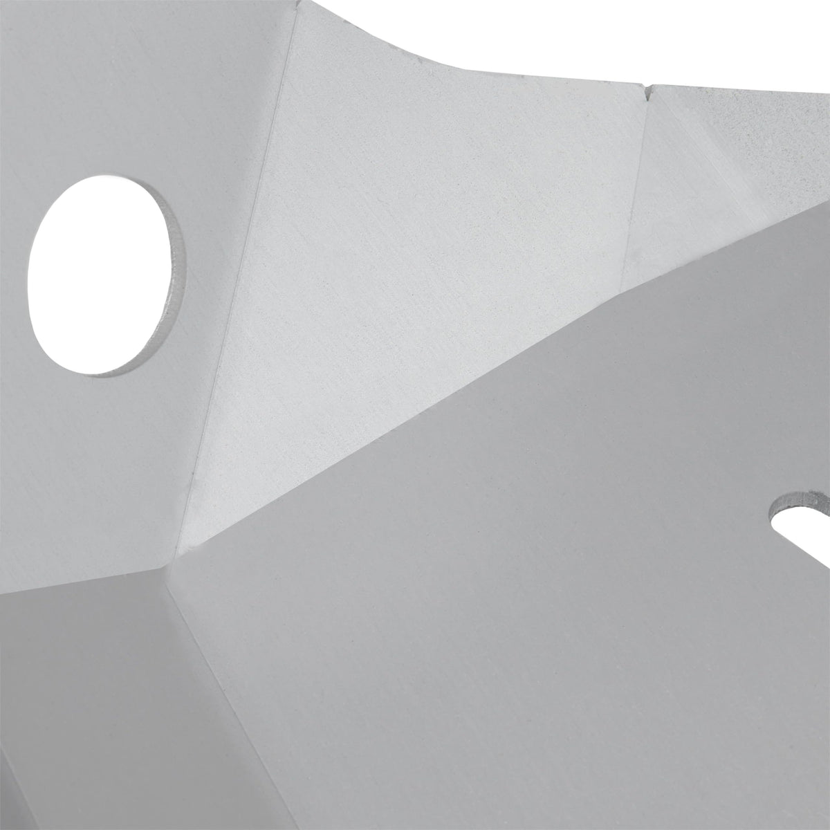 Q: What features protect the engine components?A: The skid plate features wrap-around 'wings' that provide full coverage and protect vulnerable engine components, along with cutouts that allow for routine maintenance access.