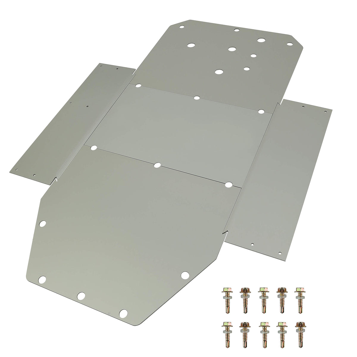 Q: Does the installation require special tools or instructions?A: While professional installation is highly recommended, the skid plate is designed to fit all existing mounting holes, and you can reuse the factory bolts on the center plates. However, installation instructions are not included.