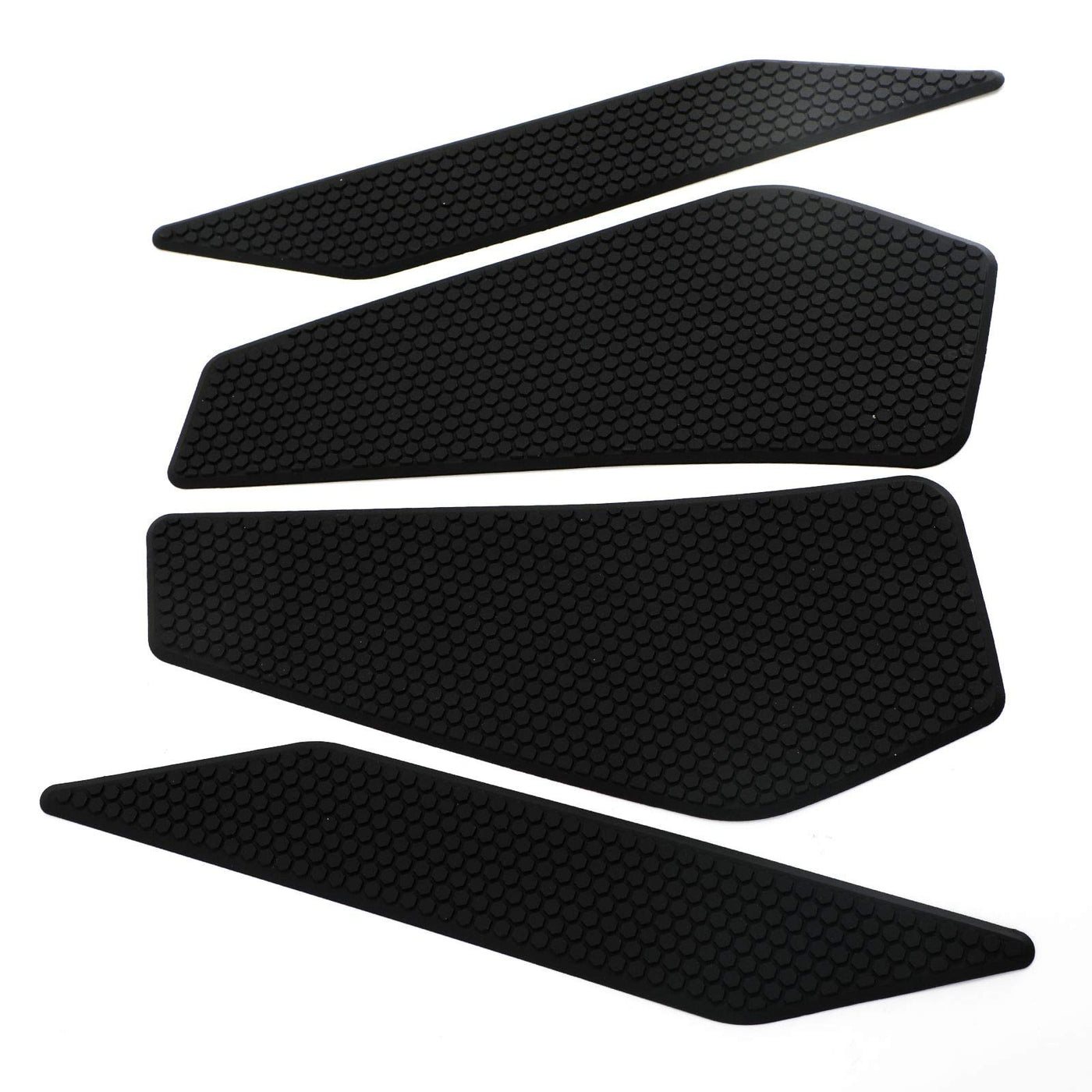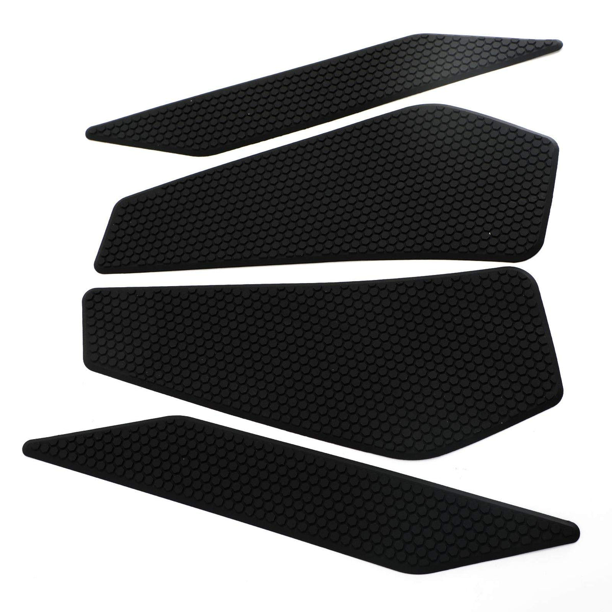 Stickers Tank Traction Pad Side Gas Knee Grip Protector Fit for Kawasaki EX400 Ninja 400 2018 2019 2020FEATURES:Increased vehicle control. More contact between the vehicle and rider/driver.High quality rubber material stands up to Sun/Wind/Rain stays pliable in the cold.Honeycomb profile traction bumps. Designed to wear down and be replaced like a tire. Pre-molded with rounded edges that resist peeling.Super strong peel-and-stick clear adhesive, just peel off the red surface and white surface.High strength adhesive holds up longer than the competition.Adhesives(Double-sided) are separated from pads.Can easily be custom cut with a knife or scissors.Instruction NOT included.Steps Recommendations:-Please use detergent to clean the surface of the target before stick it on.(Clean the part thoroughly from grease/wax/polish. Use IPA cleaner if possible.)-You can peel off the red or white surface and stick it on the fuel tank, then peel off the other side of the adhesive and put the pad on it, or you can put the adhesive on the pad first, and then stick the pad to the fuel tank.-Allow 12 hours for the pad to set in. Do not ride straight away. SPECIFICATIONS:Condition: Aftermarket 100% Brand NewMaterial: Rubber with a super strong adhesiveColor: BlackFITMENT:Fit for Kawasaki Ninja 400 2018-2020PACKAGE INCLUDES:4-Piece KitNOTE:Please check out the size and product fits your motorcycle or not before you purchase.Please use detergent to clean the surface of the target before stick it on.