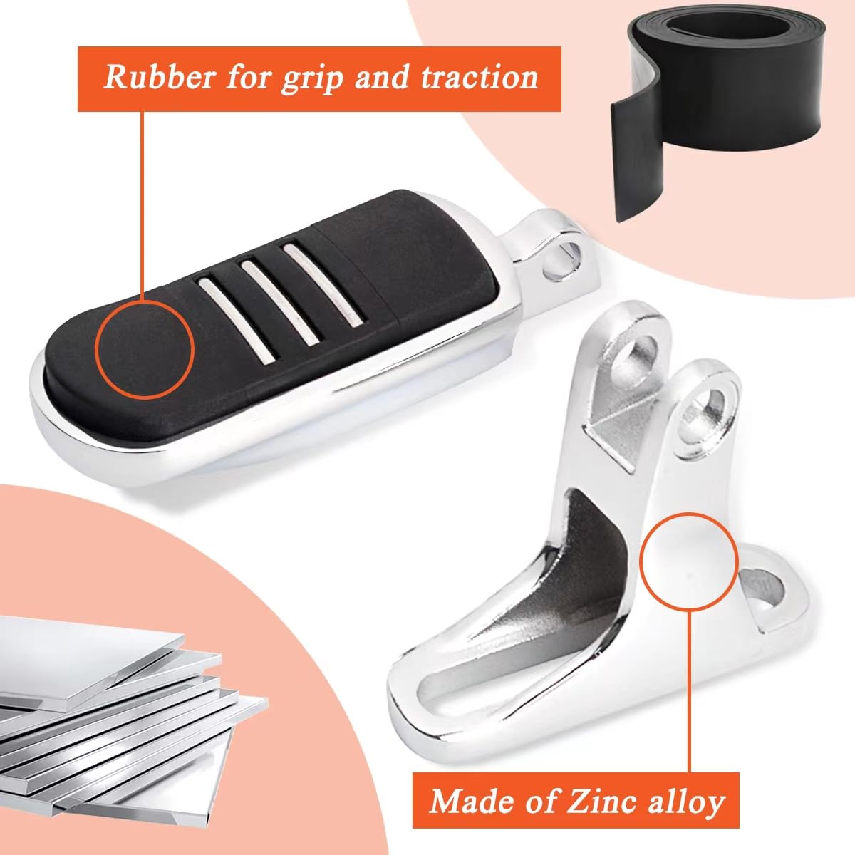Q: What materials are used in the construction of the footboard mounts?A: The FOVPLUE Passenger Mini Footboard mounts are crafted from high-quality aluminum and Zinc Alloy materials, ensuring durability and long-lasting performance even in various weather conditions.