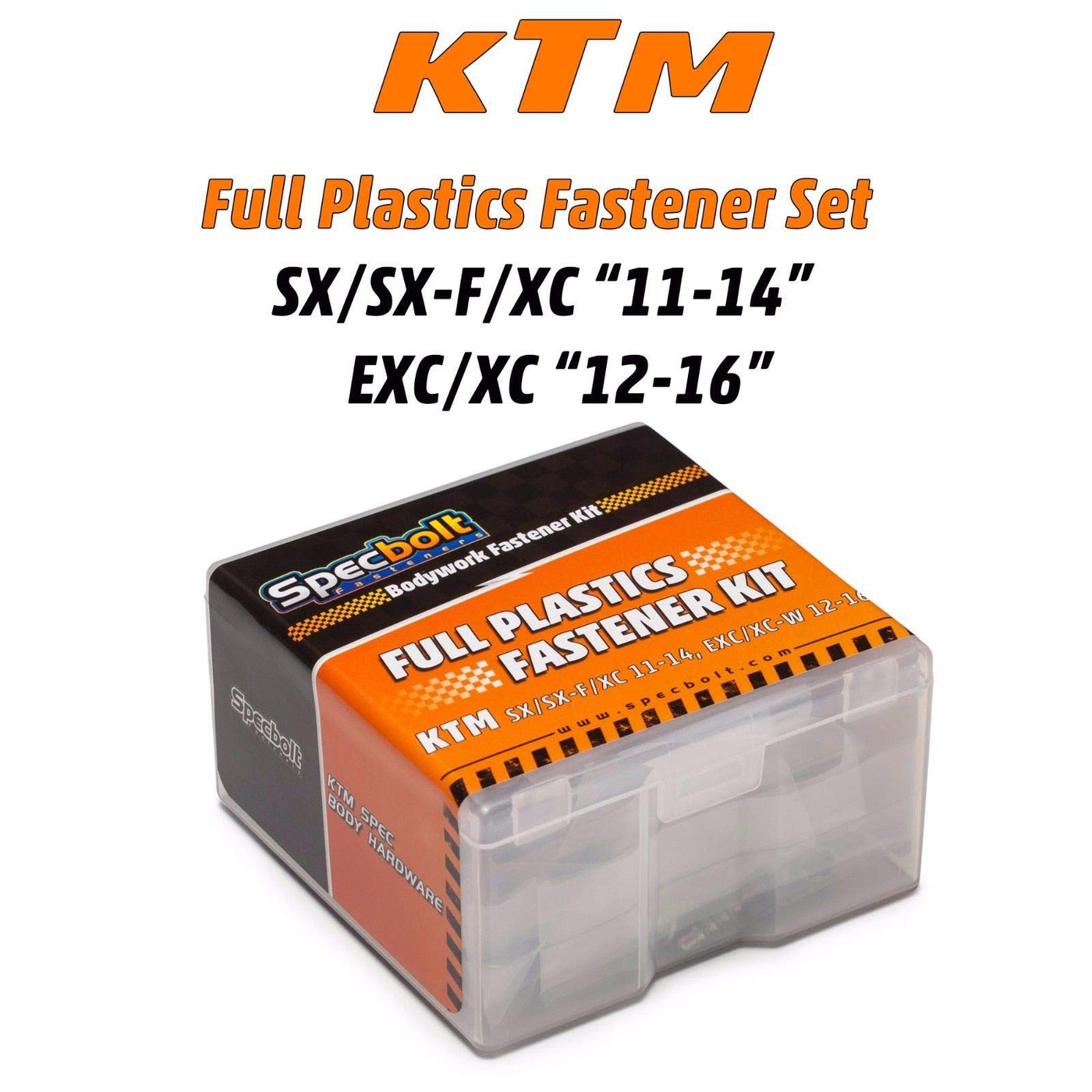 Q: What models is the Full Plastics Fastener Kit compatible with?A: The Full Plastics Fastener Kit is specifically designed for KTM models including the SX and SX-F from 2011 to 2014, as well as the XC from 2011 to 2014 and the EXC and XC-W from 2012 to 2016.