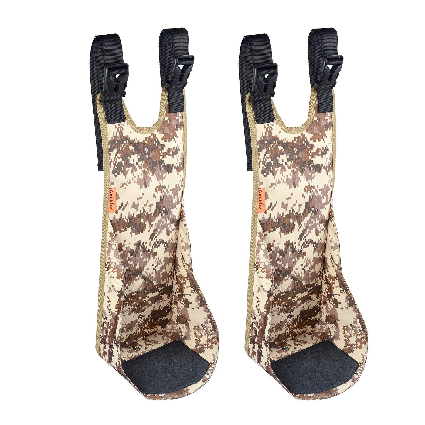 Q: What materials are used in the Goldfire ATV Rear Passenger Foot Rest?A: The Goldfire ATV Rear Passenger Foot Rest is constructed from high-quality canvas with a waterproof oxford backing, reinforced by strong nylon straps for enhanced durability.