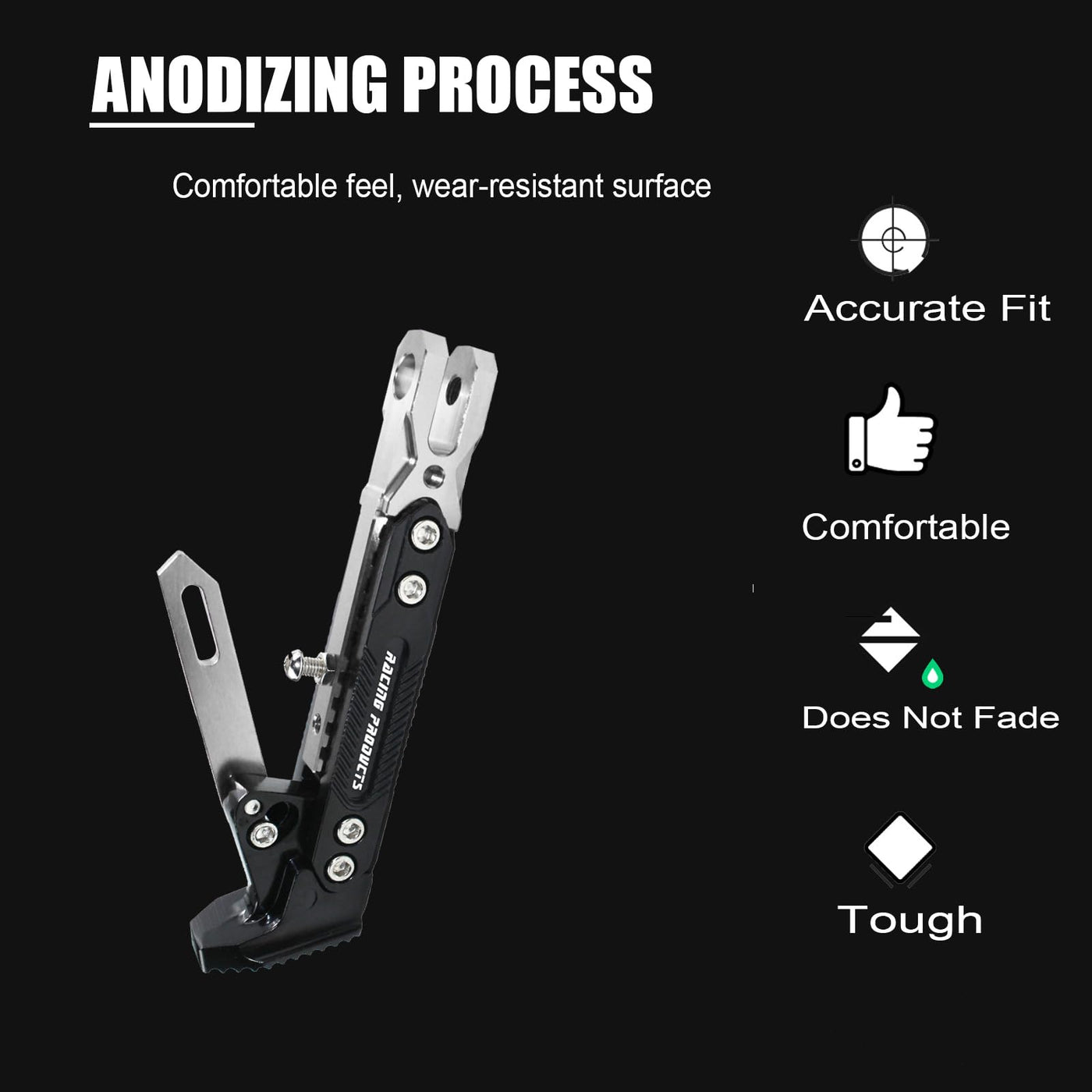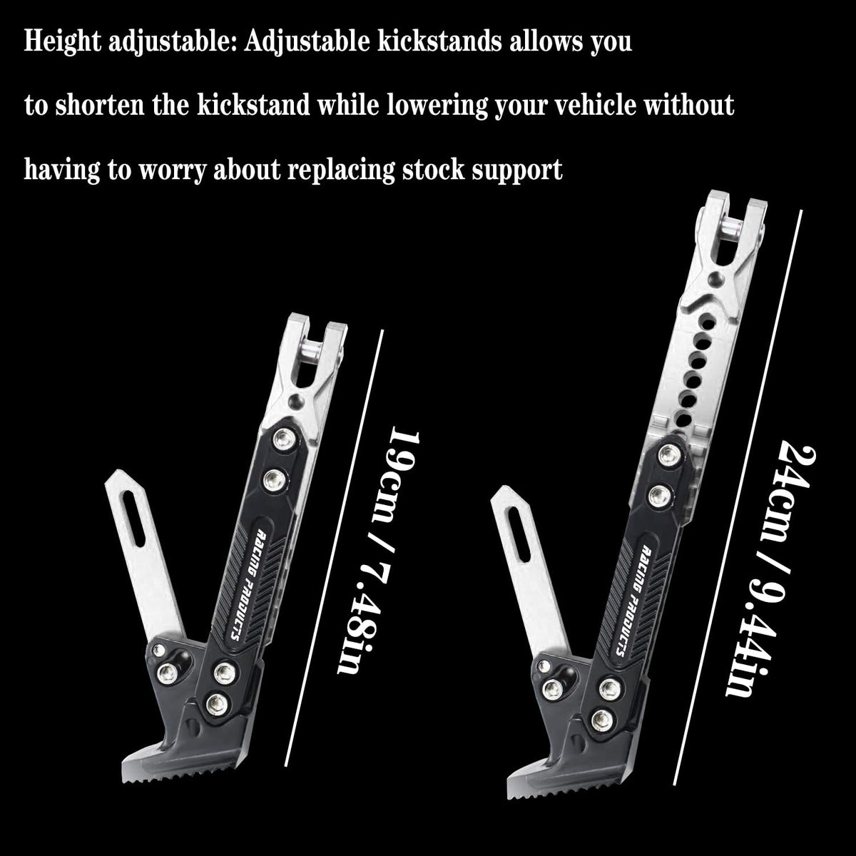 Q: Is this kickstand adjustable for different motorcycle heights?A: Yes, this adjustable kickstand allows you to easily shorten the length, making it suitable for various motorcycle heights without the need to replace the stock support.