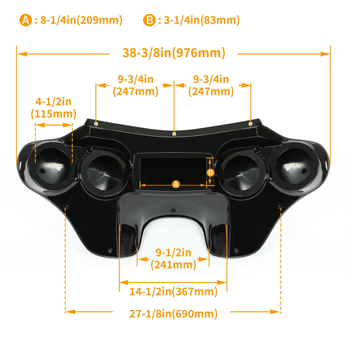 Hecasa Front Batwing Fairing Compatible With 1986-2015 Harley Davidson Heritage Softail Fat Boy Deluxe Outer Bat Wing W/Clear Windshield 4 Speaker Mount