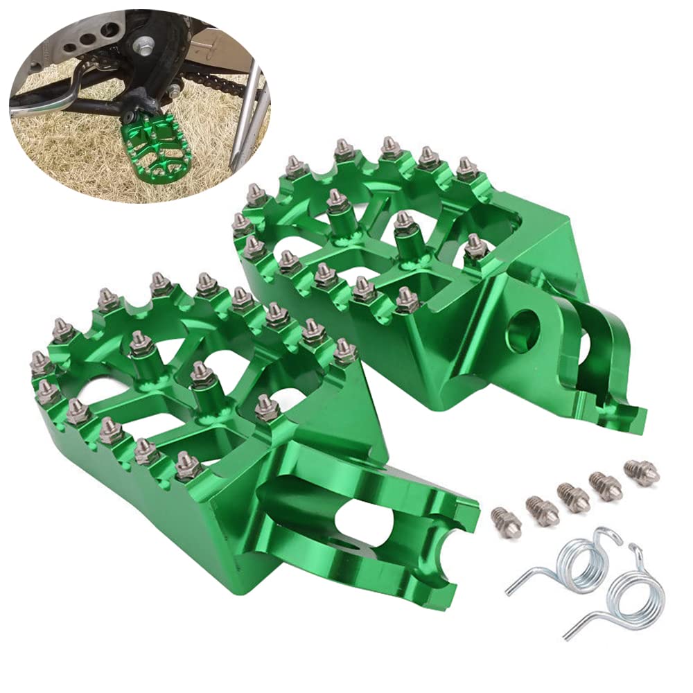 100% Brand NewAnodized color : Green as picture Made from forged T7 7075 aluminum, one of the highest strenght alloys. Sharp teeth made from hardened steel resist wear Removeable and replaceable teeth Mount with all your stock hardware Pic shown is of exact item you will receive Fit for KX250F 2006-2018 KX250 2019-2022 KX450F 2007-2018 KX450 2019-2023 KLX450R 2008-2013 KX250X 2021-2023 KX450X 2021-2023Package Includes: 1 Pair Foot Pegs As Pictures Installation Instruction NOT Included Please Check The Type Before You Buy It And Feel Free to Contact Us !