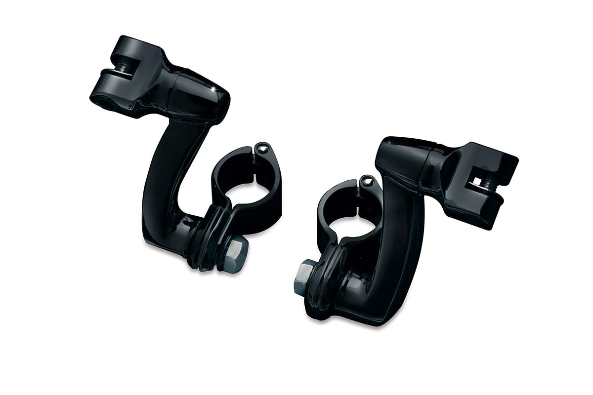 The Kuryakyn 7571 Gloss Black Longhorn Offset Peg Mounts With 1 1/4'' Clamps Provides 360 Degree Of Adjustability So It Can Be Used To Position The Peg Closer To The Rider Or Further Away. Includes (2) Gloss Black 1 1/4'' Magnum Quick Clamp Assemblies, (1) Anti-Seize Packet: Suggested Tools For Installation (Not Included): Set Of Hex Wrenches, Set Of Combination Wrenches, Socket Set And Ratchet. The Kuryakyn 7571 Gloss Black Longhorn Offset Peg Mounts With 1 1/4'' Clamps Are Multi-Fit For: 1 1/4'' Engine Guards Or Tubing.