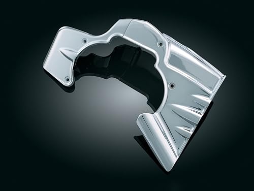 Q: What materials are used in the construction of the Kuryakyn 7877 Transmission Shroud?A: The Kuryakyn 7877 Transmission Shroud is constructed with durable materials that provide lasting performance and features a chrome finish, ensuring both durability and a polished look.