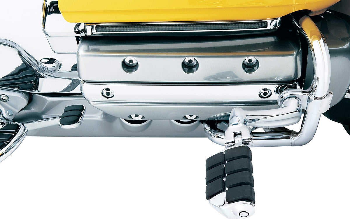 With the Kuryakyn 7980 Longhorn offset highway pegs, gain 360 degrees of adjustability. Features 3 1/4'' arms that provide up to 6 1/2'' of adjustment; Magnum Quick Clamps allow engine guard application. Quality constructed with durable aluminum and premium chrome plating; EPDM rubber inserts offer traction and vibration dampening. Easy to install and includes (1) Left Longhorn Offset /1'' Magnum Quick Clamp/Dually ISO Peg, (1) Right Longhorn Offset /1'' Magnum Clamp/Dually ISO Peg; suggestesd tools for installation (not included): set of hex wrenches, set of combination wrenches, or socket set and ratchet. The Kuryakyn 7980 Longhorn offset highway pegs are multi-fit for 1'' engine guards or tubing.