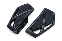The Kuryakyn 5773 gloss black phantom mini floorboards will accommodate a variety of Indian, Harley-Davidson, Victory and metric cruisers. Give your bike that edgy yet modern look with these sharp and sculpted angular lines along with a much larger area to rest your foot compared to standard foot pegs. Combined quality A380 aluminum sporting a lustrous gloss black finish and EPDM rubber inserts offer superior traction that will not harden, crack or wear over time. The EPDM rubber creates stability, traction and vibration-dampening comfort. Includes (1) Gloss black right mini board, (1) gloss black left mini board; suggested tools for installation (not included): set of hex wrenches, combination wrench set and peg adapters for your specific model/year (sold separately). The Kuryakyn 5773 gloss black phantom mini floorboards are multi-fit and compatible with Harley-Davidson using: OEM stock foot peg mount location or Kuryakyn highway peg mounts, (excludes The Rider Position '15-'19 XG Street): all require model specific splined adapter (sold separately).