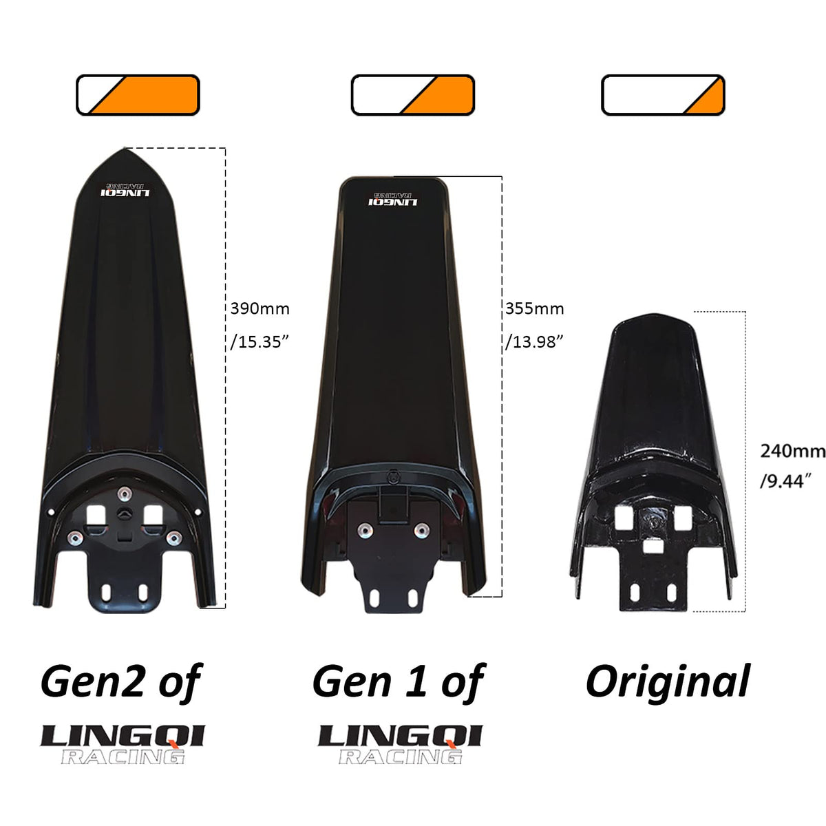Q: What are the key features of the LINGQI RACING 2nd Generation Modified Longer Rear Fender?A: The LINGQI RACING 2nd Generation Modified Longer Rear Fender boasts several key features, including a streamlined design for enhanced visual appeal, a more powerful anti-mud protection compared to the previous generation, and compatibility with various seat types. It also incorporates hidden iron brackets for improved durability and aesthetics.