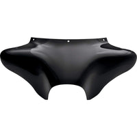 Q: What materials are used in the Memphis Shades Batwing Fairing?A: The Memphis Shades Batwing Fairing is constructed from high-quality black textured ABS for the inner fairing structure and features an opaque black Lucite finish for the exterior, providing durability and aesthetic appeal.