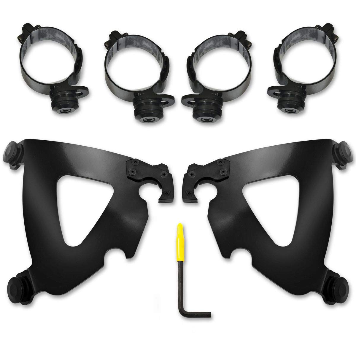 Kits are custom-fit to each style of bike for a truly no-hassle installation. Made in the U.S.A. Sold as a kit. Notes: Mount kit ONLY; all shields sold separately. Some fitments may require relocation of front turn signals. Trigger-Lock Mount Kits vs Pla