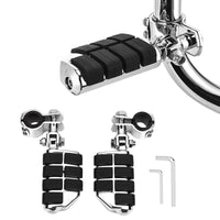 Q: What motorcycles are compatible with the Motorcycle Foot Pegs?A: These Motorcycle Foot Pegs are universally compatible with highway engine guards that have a mounting clamp inner diameter ranging from 1" (25mm) to 1 1/4" (32mm) and 1 1/3" (34mm). This makes them suitable for various brands including Harley Davidson, Honda, Kawasaki, Suzuki, and Yamaha.