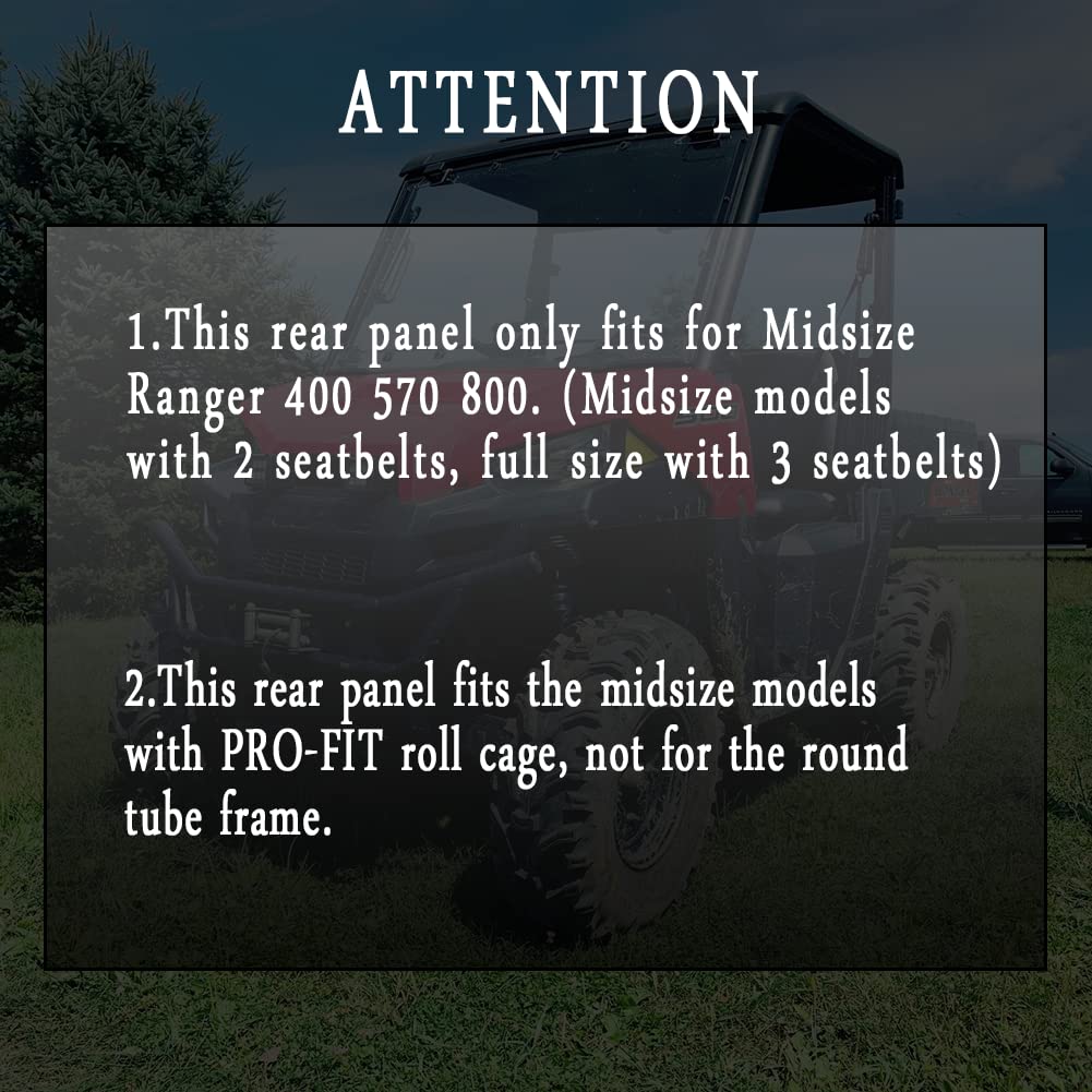 Qymoto Soft Rear Window , Rear Windshield, Dust Panel For Polaris Midsize Ranger 570 / Crew / Etx / Ev Pro-Fit Roll Cage Back Wi