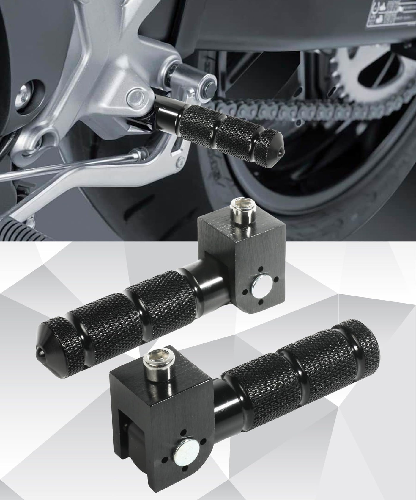 Q: How does the anti-slip design enhance safety?A: The knurled anti-slip design of the RACOONA foot pegs provides passengers with a secure grip, enhancing safety and comfort during rides, even on uneven terrain.