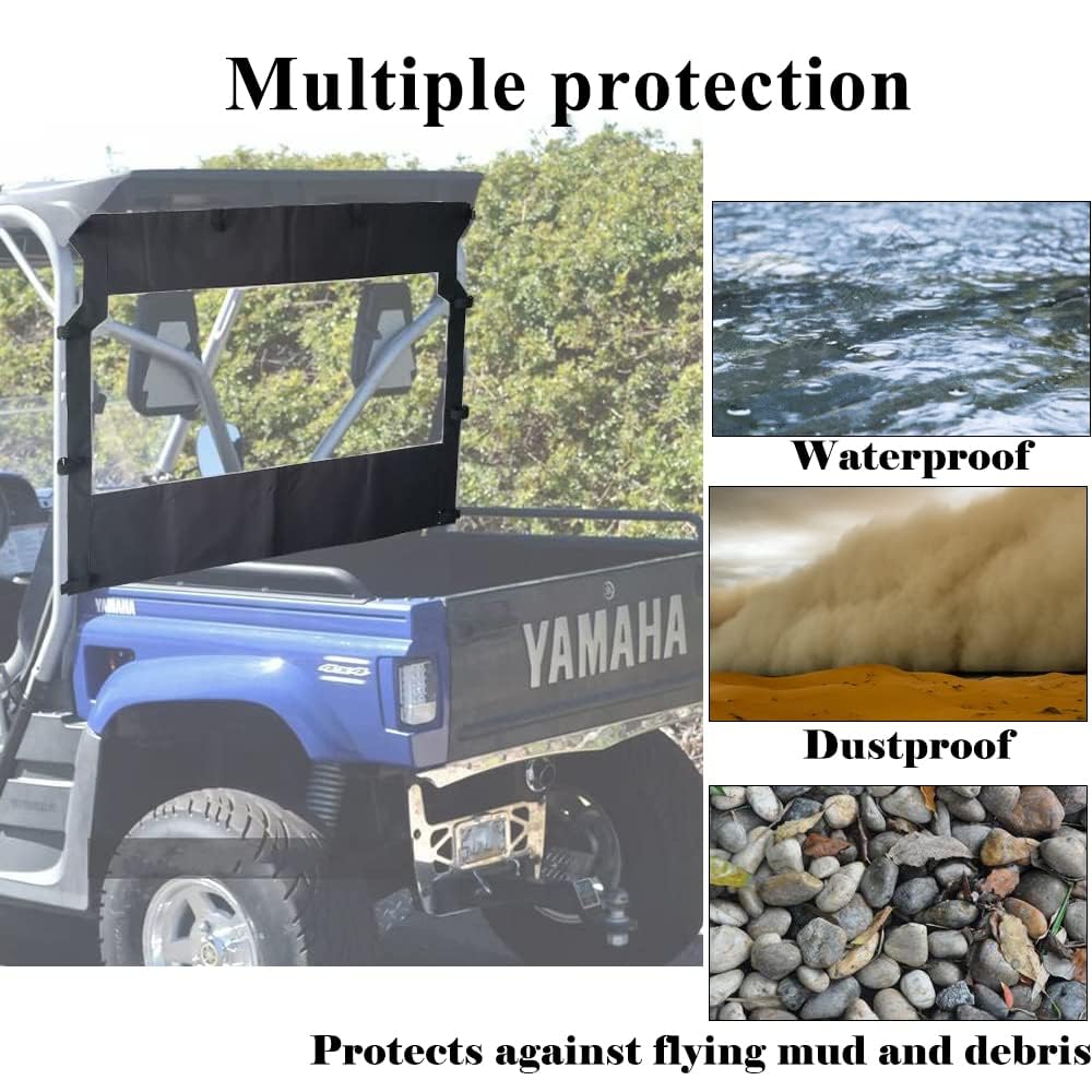 Fitment Compatible With 2006 Rhino 450 Compatible With 2006 2007 Rhino 660 Compatible With Rhino 700(Except Rhino 700 Ducks Edition) Compatible With 2007 2009 2012 Rhino This Utv Rear Windshield Is Made Of The Waterproof 600 Denier Oxford Fabric Has Excellent Abrasion Resistance And Can Be Used For A Long Time. This Rear Windshield Uses Ultra-Clear Window Material For Good Visibility And Keep Dust,Rainwater And Mud Away From Your Seat Well.
