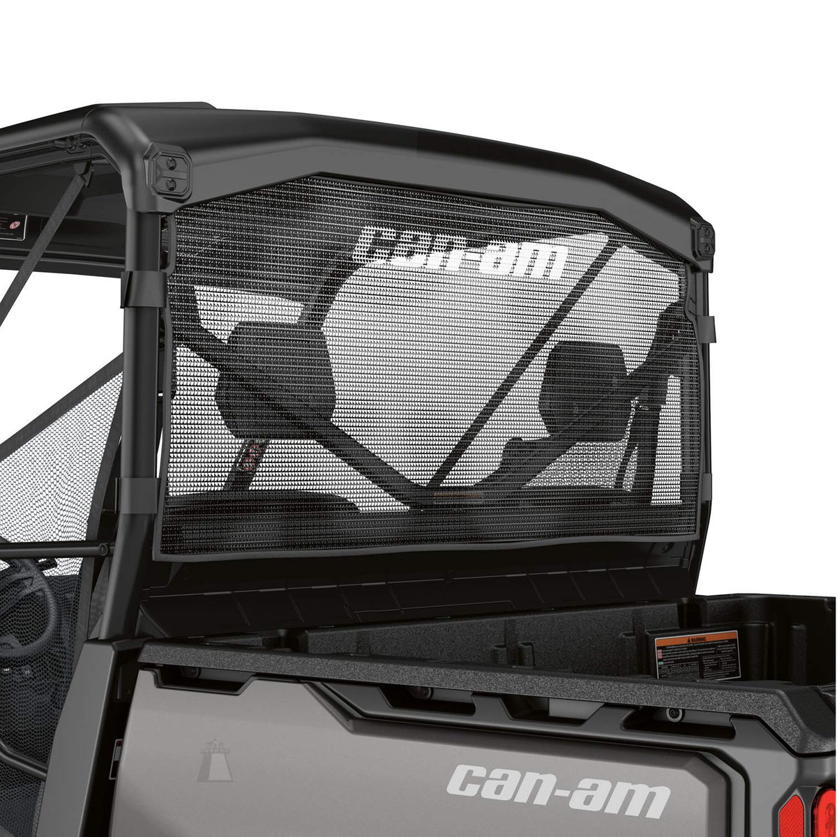Q: What is the material and color of the Can-Am Rear Wind Screen?A: The Can-Am Rear Wind Screen features a transparent black mesh material that maintains visibility while providing added comfort and protection against wind.