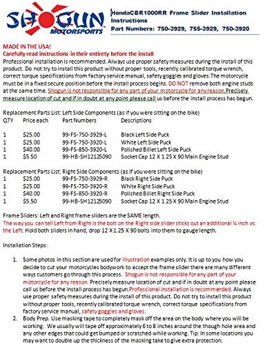 Shogun Hon Cbr1000Rr Cbr 1000 2008 2009 2010 2011 2012 2013 Black Complete Frame Slider Kit Includes Frame Sliders Swing Arm Spools And Bar Ends - 755-3929 - Made In The Usa