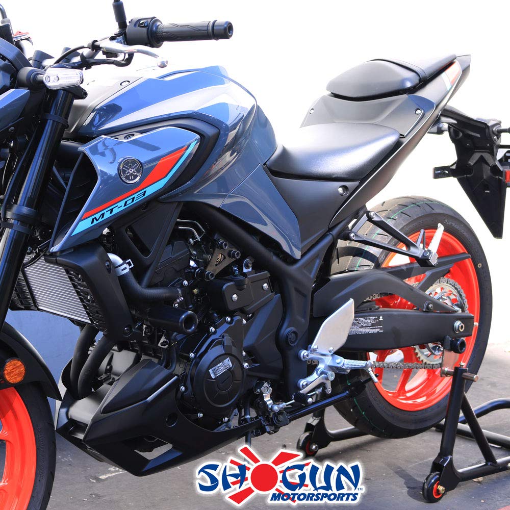 Q: Are the Shogun frame sliders compatible with ABS and non-ABS models of the Yamaha MT-03?A: Yes, the Shogun USA Made frame sliders are designed to fit both ABS and non-ABS models of the Yamaha MT-03 from 2016 to 2025.
