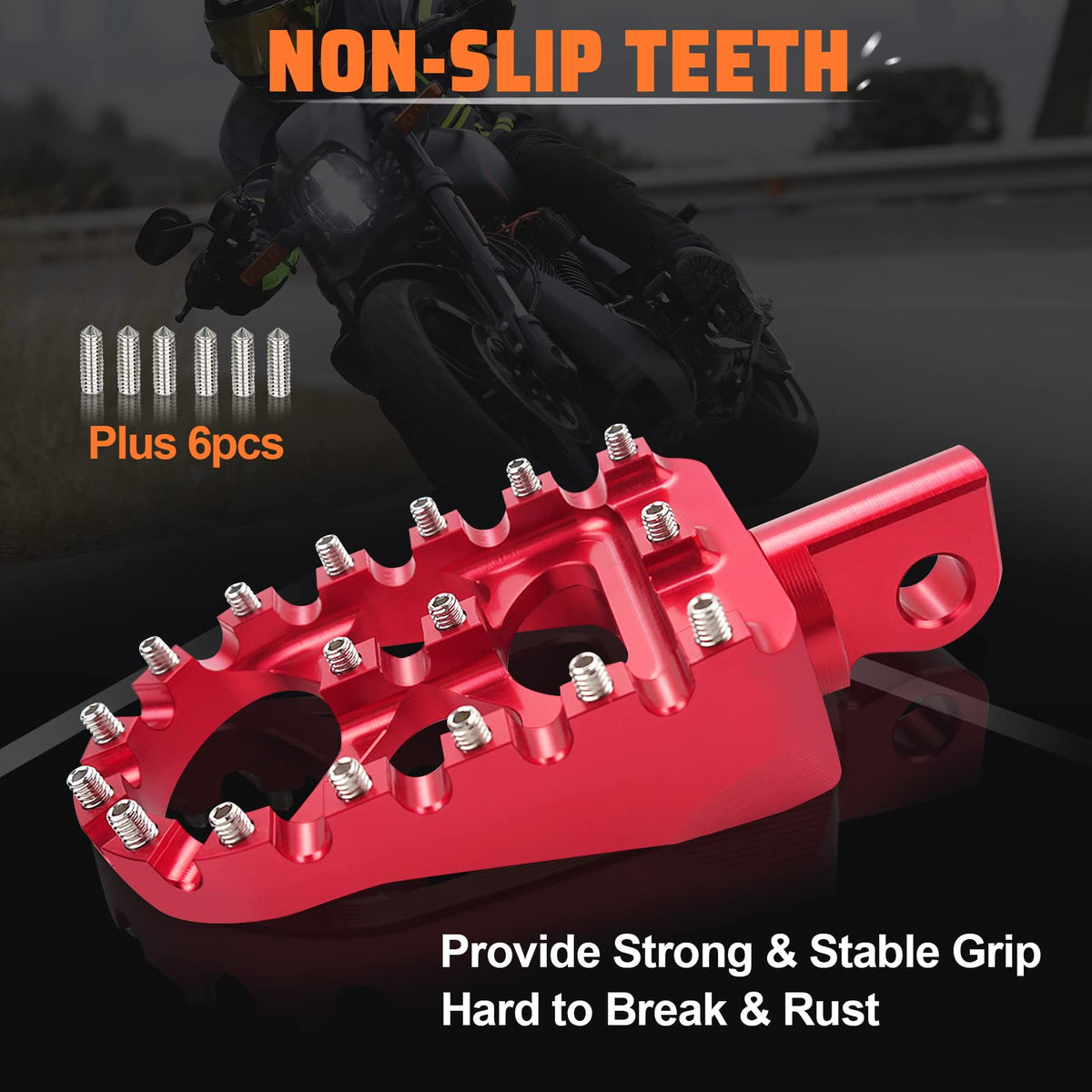Q: Do the foot pegs provide grip for my shoes?A: Absolutely! The StarknightMT foot pegs are designed with sturdy, replaceable sharp teeth on the surface. This feature enhances grip for your shoes, providing an effective anti-slip effect to ensure your safety and comfort during the ride.