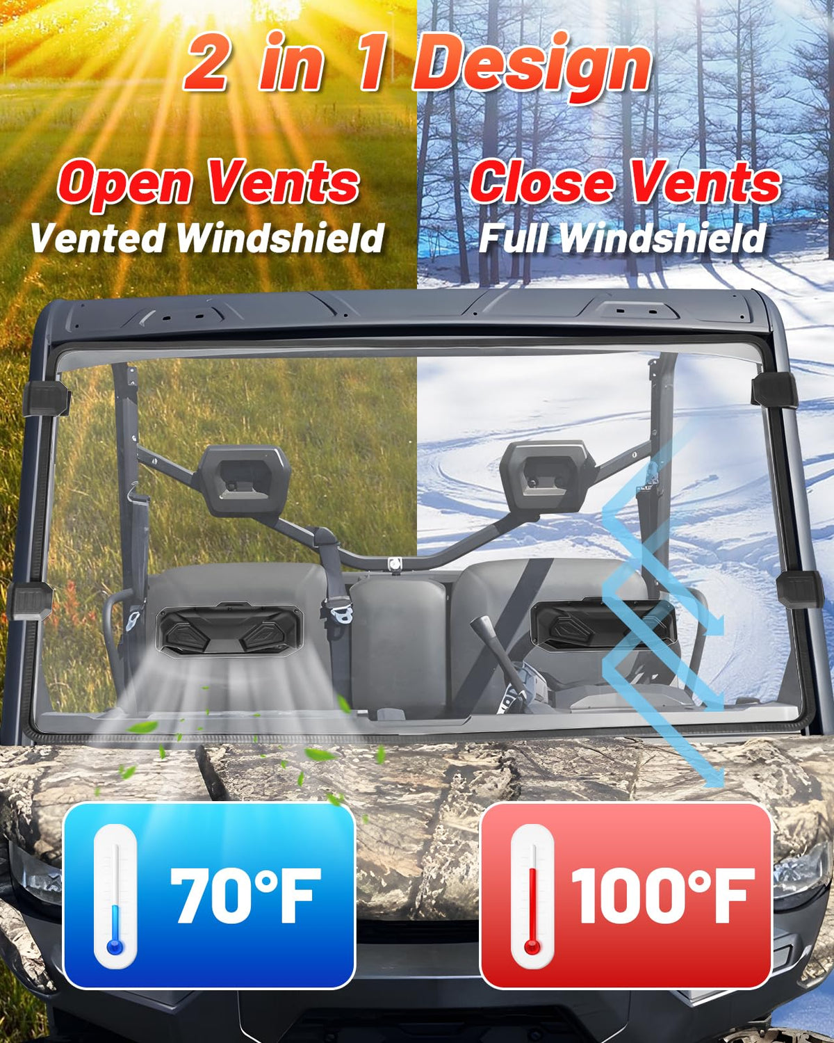 StarknightMT Scratch Resistant Vented Windshield Compatible With 2016-2025 Can-Am Defender HD5/HD8/HD10/MAX, Front Full Defender