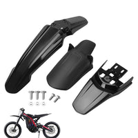 Front Fender + Rear Shock Fender + Rear Fender fits for Sur Ron / Surron / Light BeeFeatures:These Fenders made of high quality ABS plastic with good toughness and do not break easily when twisted; it is flexible, has increased impact resistance and heat resistance and offers more effective protection. Don't worry about cleaning, the surface of the fenders are smooth, friction resistant and easy to clean (note: please wipe with a soft cloth).No sur ron dirt bike is complete without fenders. These fenders protect the rider from sand and mud splashes while riding, making the ride more comfortable and also reducing the impact of splashes on other vehicles and pedestrians to a certain extent during the ride. Just do it Now!Don't hesitate any longer! Replace your old or broken fender directly and bring yourself a new and different experience!!!Fitment:for Light Bee / Surron / Sur-Ron / Surron S / Surron X / Segway X160 / X260Package Contents:Brand New - 1x Front Fender + 1x Rear Shock Fender + 1x Rear Fender, 3 fenders in total and other parts as shown in the first picture.Installation instructions are not included.Specification:Condition: Brand NewColor: BlackMaterial: ABS PlasticNOTE: It is a compatible spare part. The brands mentioned above just show that this product of ours can be compatible with it.