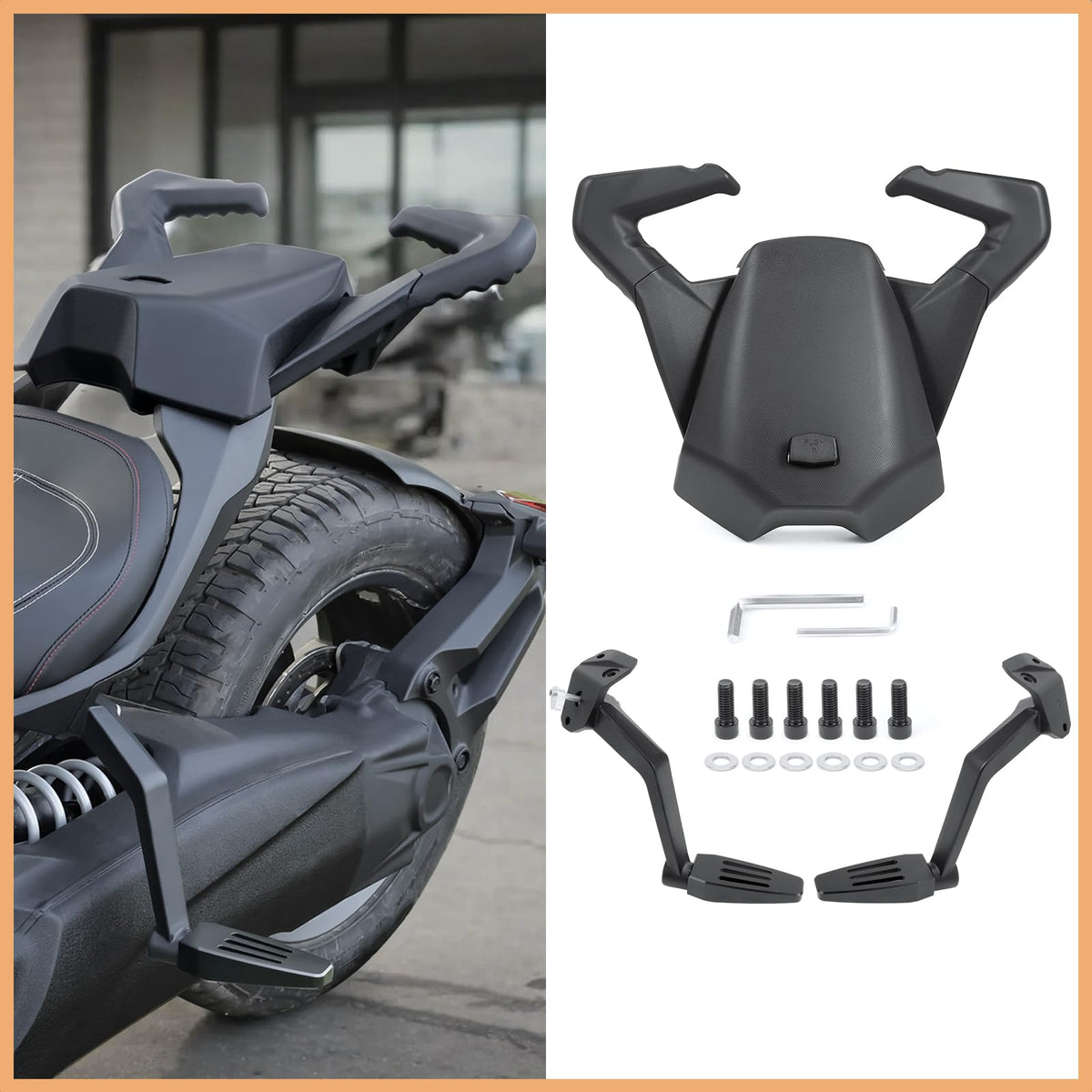 Upgraded Passenger foot pegs +Passenger Seat with Grab Handles for Can Am Ryker All Models, Replace #219400842, MAX Mount 219400