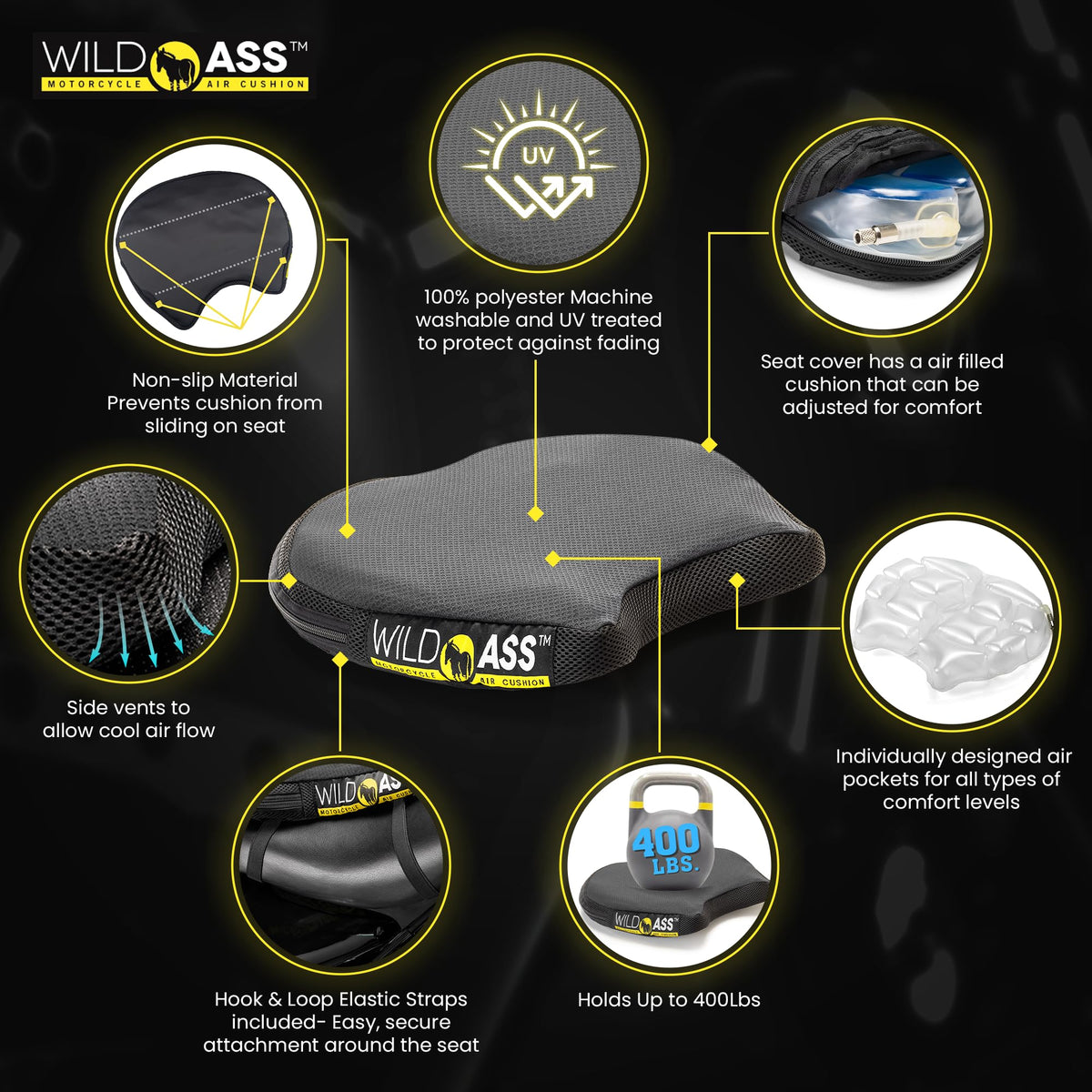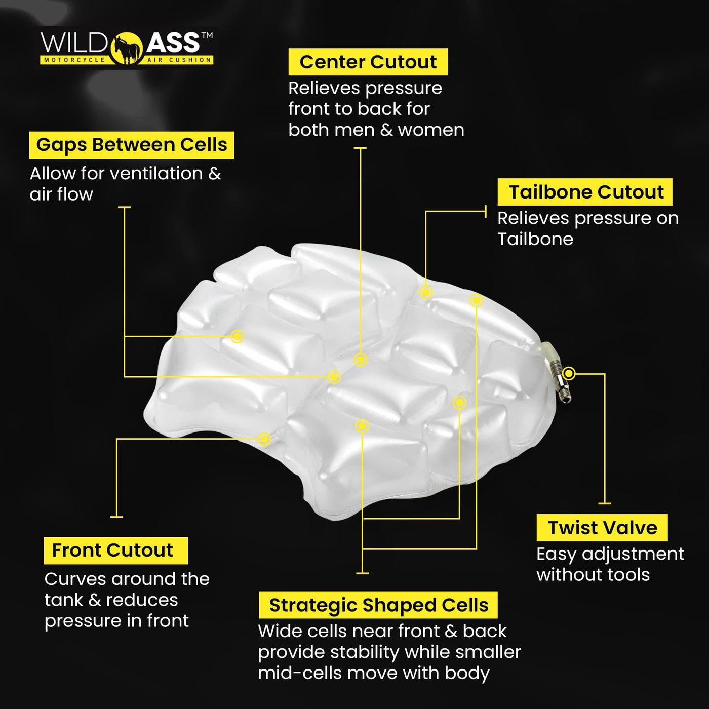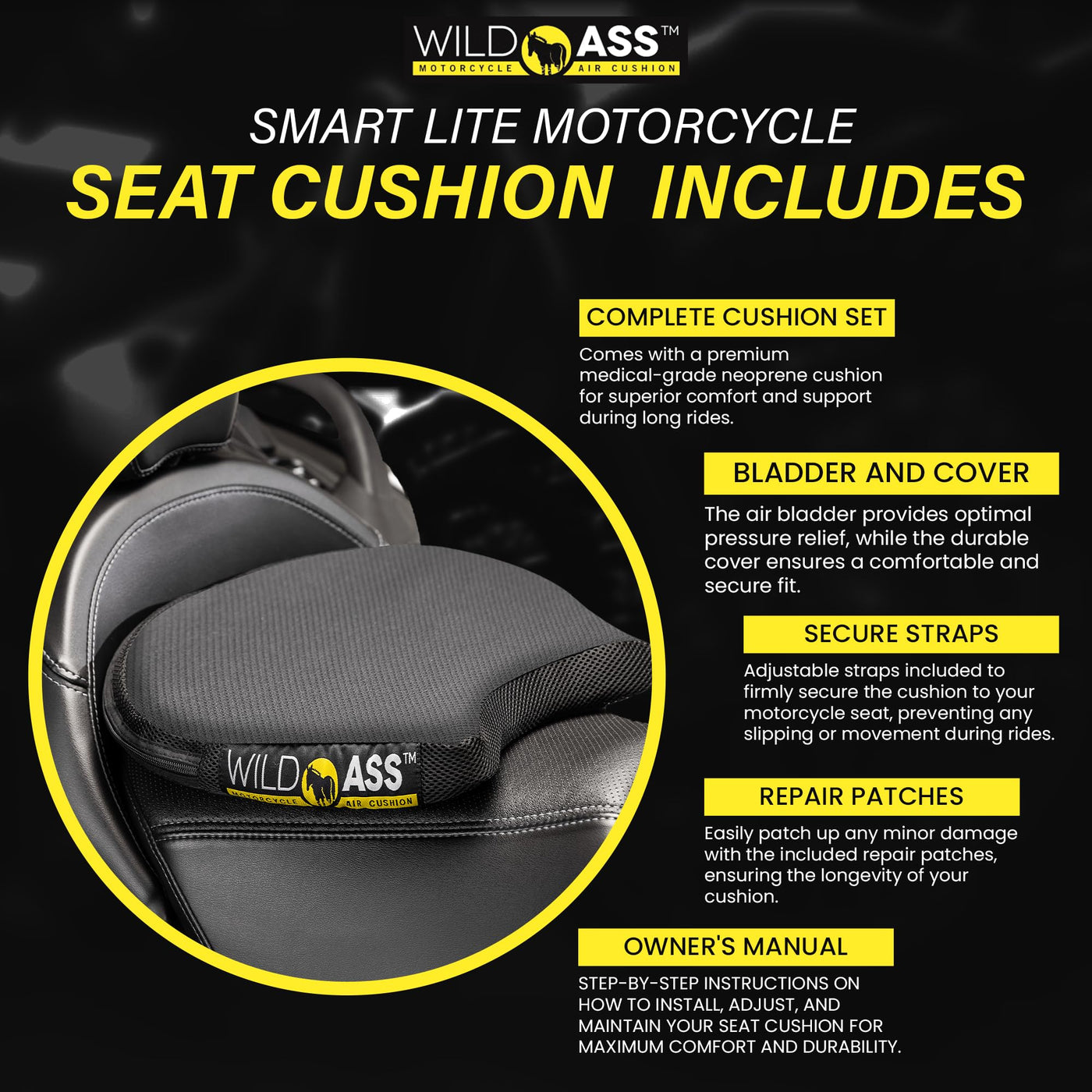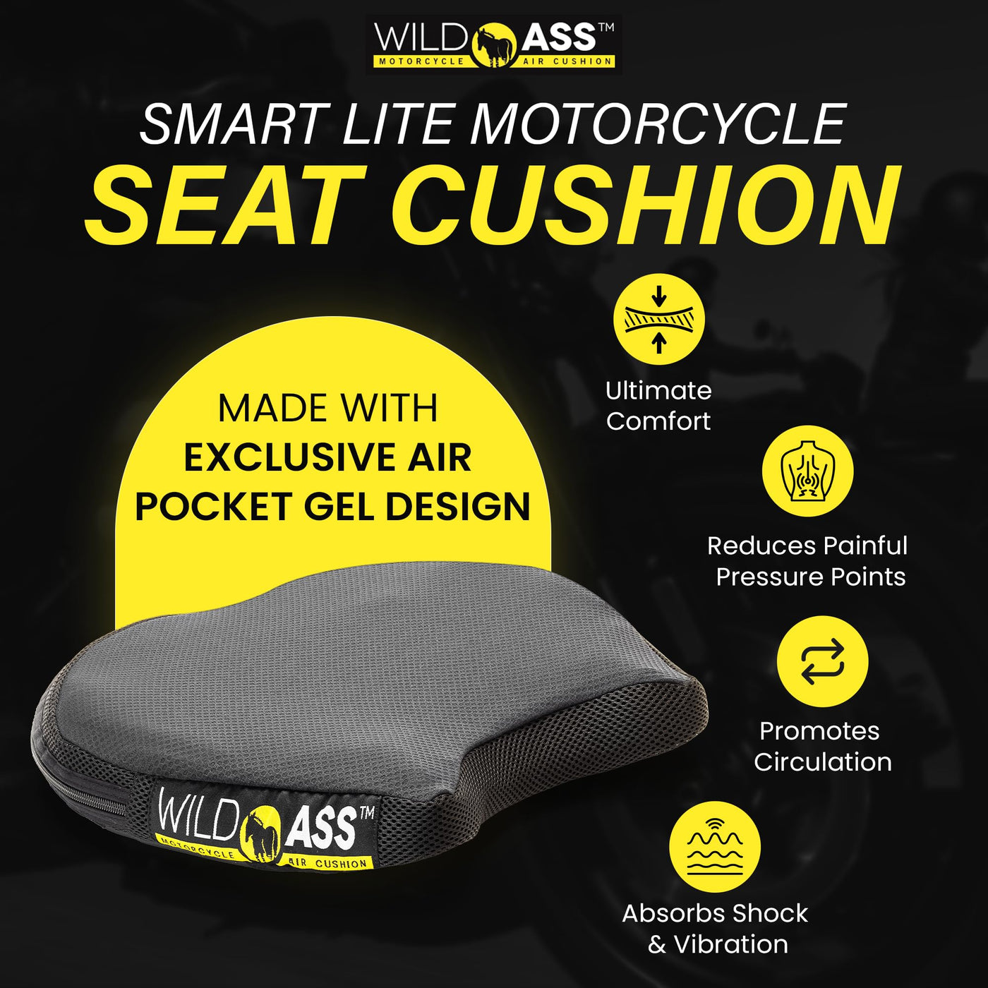 Wild Ass Motorcycle Air Gel Smart-Lite Pad - Ergonomic Universal Fitting Air Adjusting Cushion with Straps - Ultimate Rider Comf