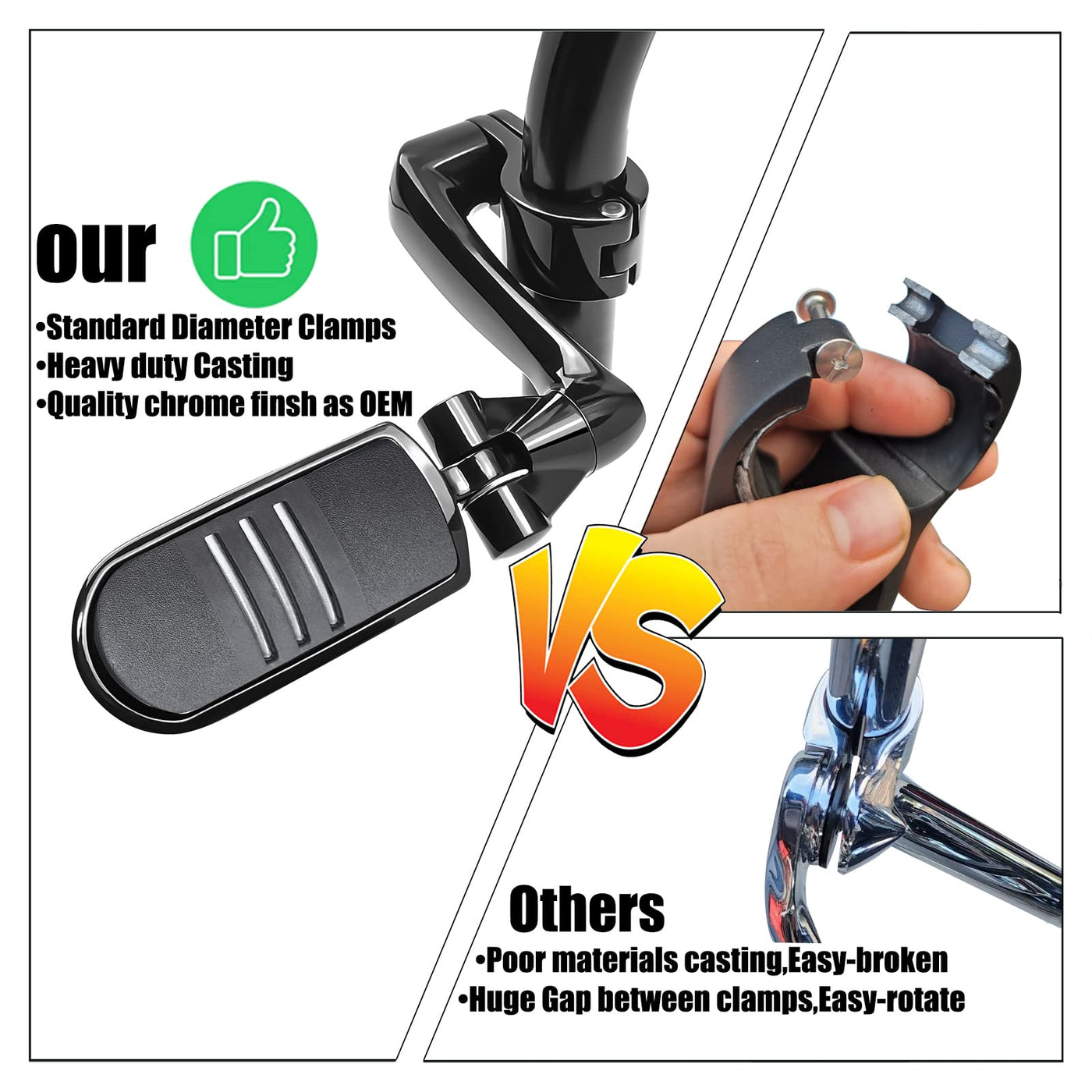 Features: Condition:Aftermarket 100% Brand New Material:Sturdy Strength Steel Casting Clamps,Extension Arm And Pegs Made Of Premium Rubber And Quality Aluminum Alloy Color:Gloss Black Fitment(Only Fit For Models With 1.25'' Engine Guards Or 1 1/4 Inch Crash Bar): Note: Not Recommended For Motorcycles With Lower Fairings. Road Glide 1998-2022 Road King 1995-2022 Electra Glide 1984-2022 Street Glide 2006-2022 Softail Classic/Custom/Standard/Deluxe/Slim 1983-2022 Dyna Cruisers Super Glide/Street Bob/Wide Glide/Low Rider 1991-2022 Sportster Xl Iron 883 1200 /Forty-Eight 1988-2022 Honda Shadow Phantom Spirit Aero Ace Vt 750 1100 1300 Vtx 1300 Retro Kawasaki Vulcan 900 1100 Custom Classic Lt Yamaha V Star 250 650 950 1100 1300 Tourer Classic Road Star S Suzuki Boulevard C50 T Indian Cheif Chieftain Scout Package Included: One Highway Peg Mount And Pegs Kit,Hardware Wrench Required For Installation, Installation Manual. Service: For Any Queries Regarding Our Products,Please Feel Free To Contact Us Via Amazon.Our Service Team Will Solve The Customer'S Problems In A Timely And Perfect Manner.