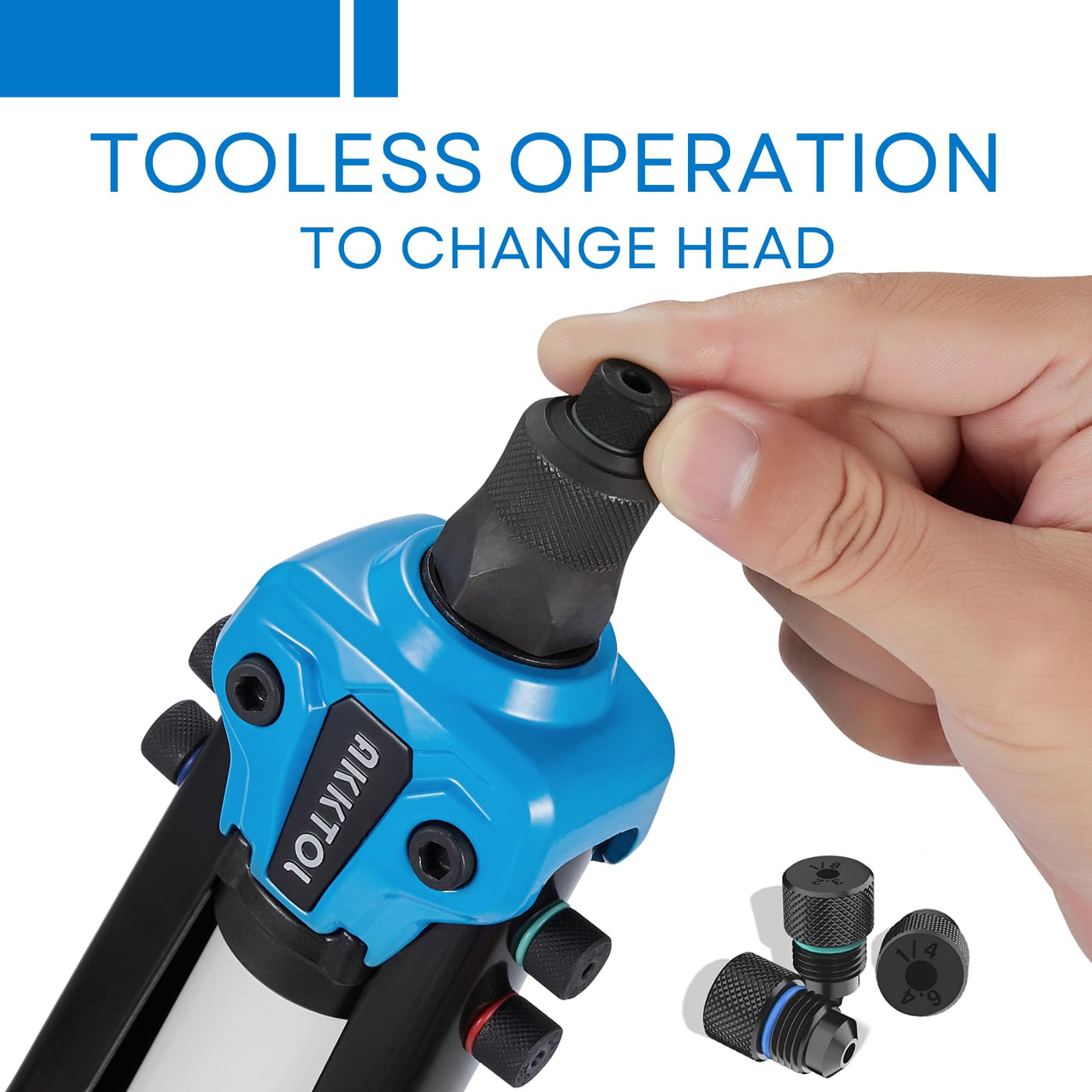 Akktol Rivet Gun Kit, 1/4 '' Pop Rivet Gun Kit With 210Pcs Blind Rivets, Heavy Duty 13 '' Rivet Gun Tool With 5 Nosepieces Incl.