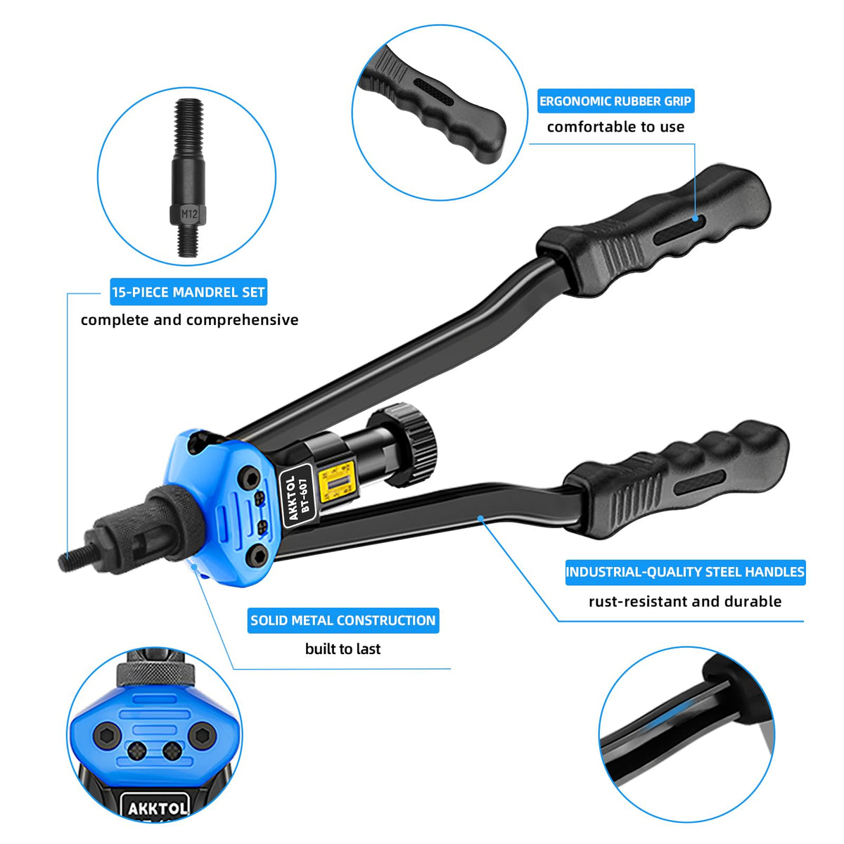 Akktol Rivet Nut Tool, 16 Rivnut Tool Kit With 15 Metric And Sae Mandrels, 125-Pcs Rivet Nut Assortment Kit, Rugged Carrying Case, Ideal For Sheet Metal & Automotive Work
