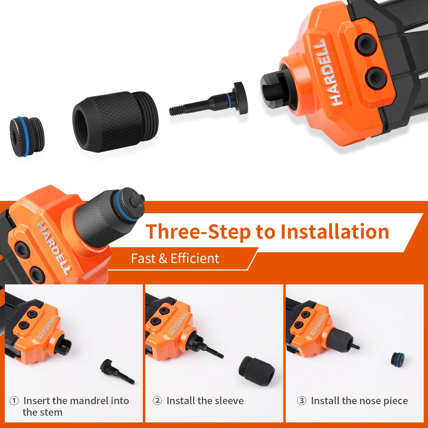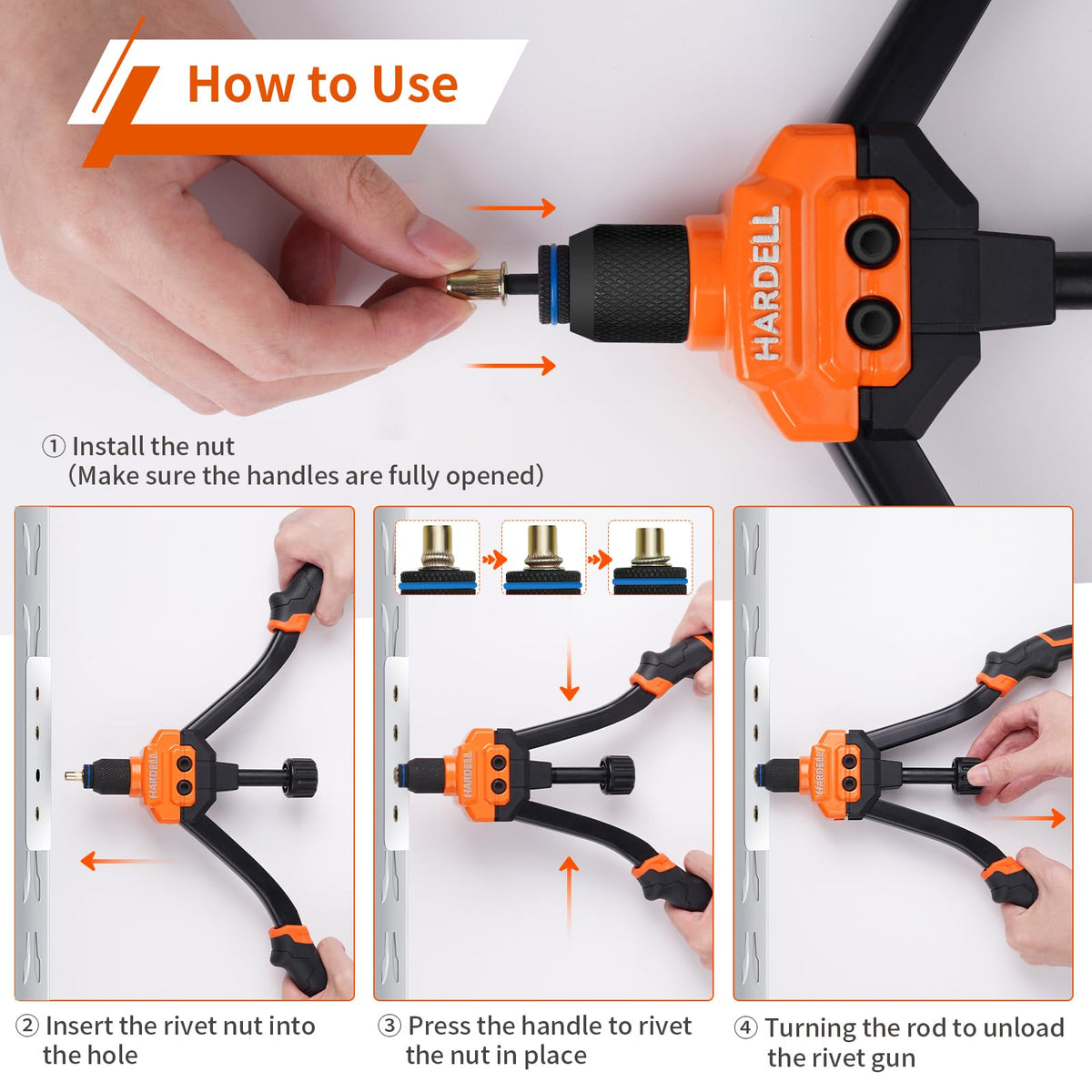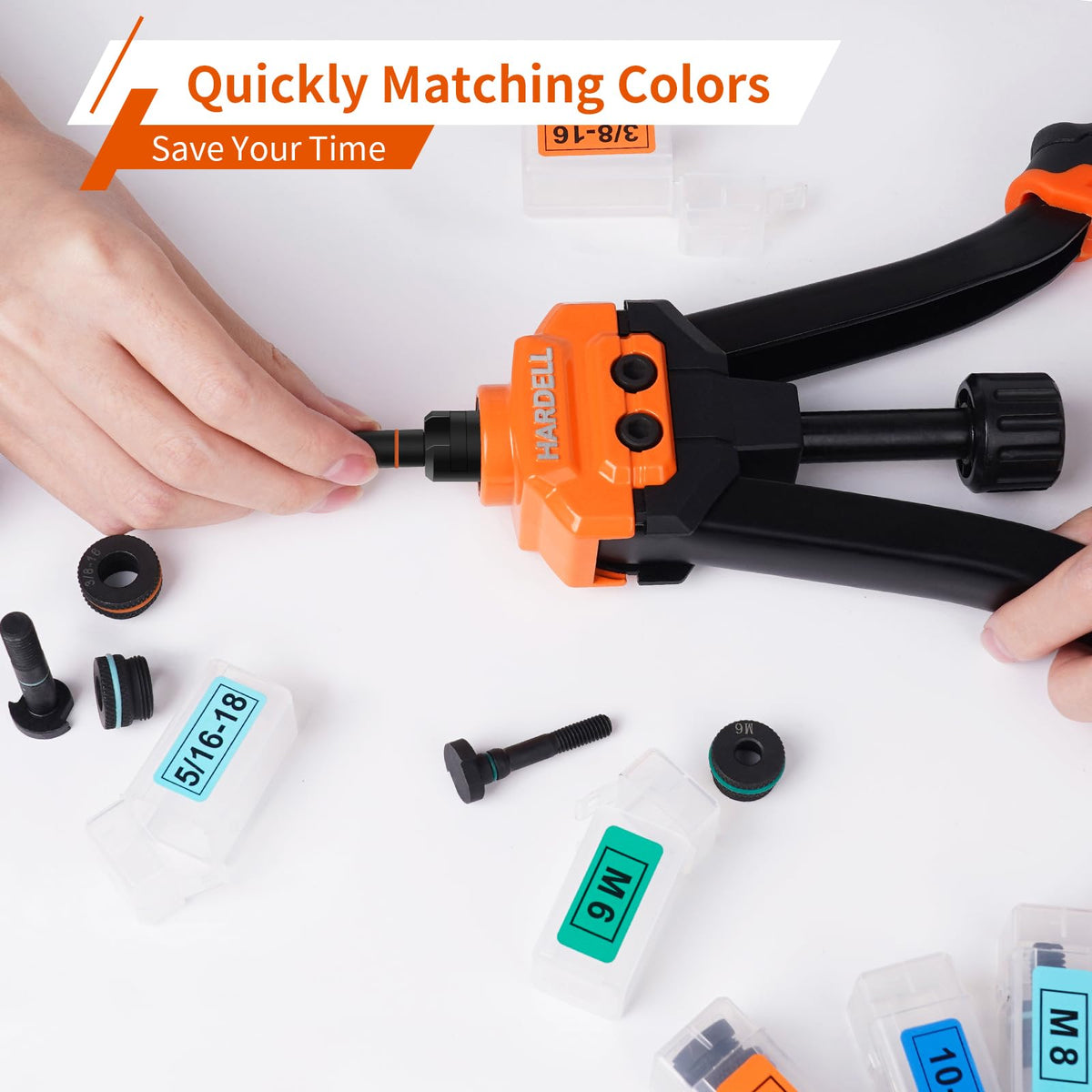Hardell Rivet Nut Tool, 14'' Rivnut Tool With 100 Pcs Rivet Nuts And 7 Metric & Inch Mandrels M6 M8 M10, 1/4-20, 5/16-18, 3/8-16