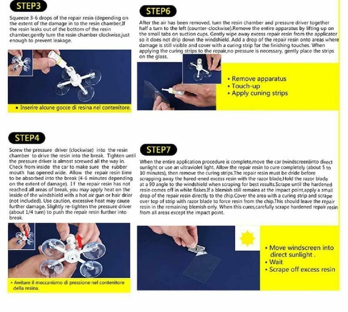 Saves Time And Money By Repairing Chips And Cracks Quickly And Easily Rain-X Windshield Repair Kit Helps You Minimize The Appearance And Stop The Spread Of Chips And Cracks In Your Windshield. It Removes Air From The Break, Fills It With Durable Resin And Makes It Even Stronger Than Before. For Best Results, Repairs Should Be Made As Soon As Possible After The Damage Occurs And Before The Break Is Contaminated By Dirt Or Water. The Kit Works Best On Round Damage Not More Than One Inch In Diameter, And Cracks Not Longer Than 12 Inches. It Will Not Repair Damage To More Than One Layer Of Glass. Kit Components: 1 Gram Bottle Of Resin Repair Device Curing Strips Sleeved Razor Blade Instruction Sheet