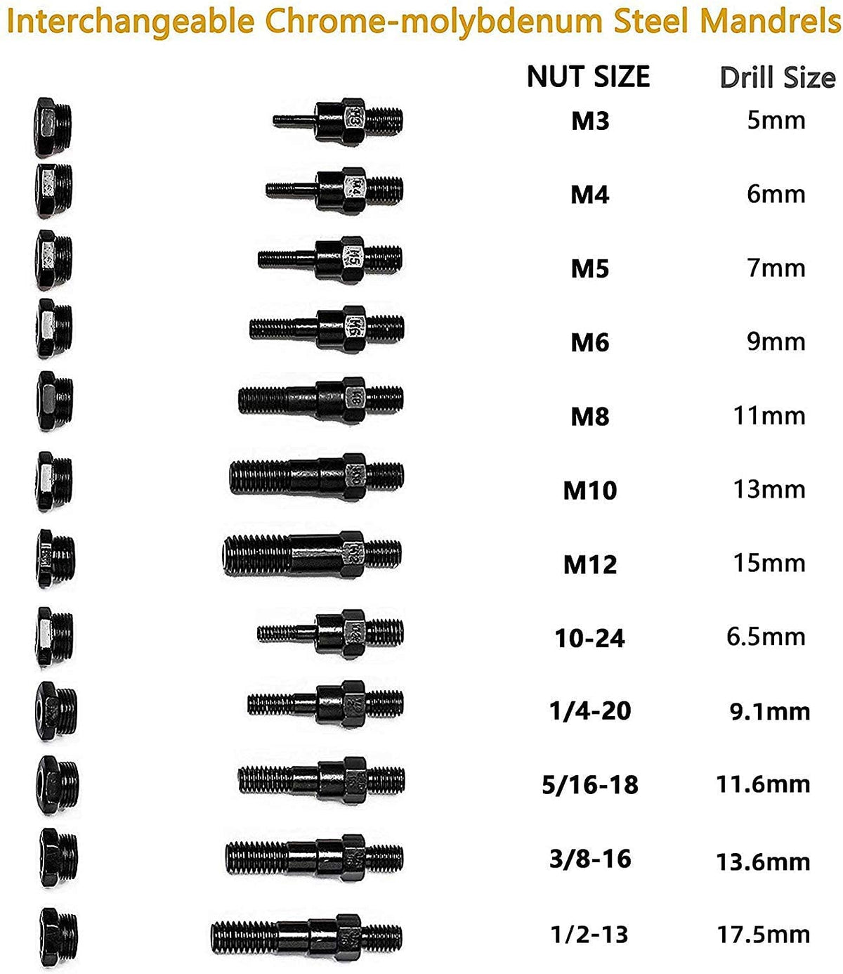 Rzx 16" Rivet Nut Tool Hand Blind Riveter With Nut Setting System Totally 12Mandrels M3 M4 M5,M6,M8,M10 M12, 10-24, 1/4-20, 5/16-18,3/8-16,1/2-13 +115Pcs Rivets Nuts With Aluminum Carrying Case